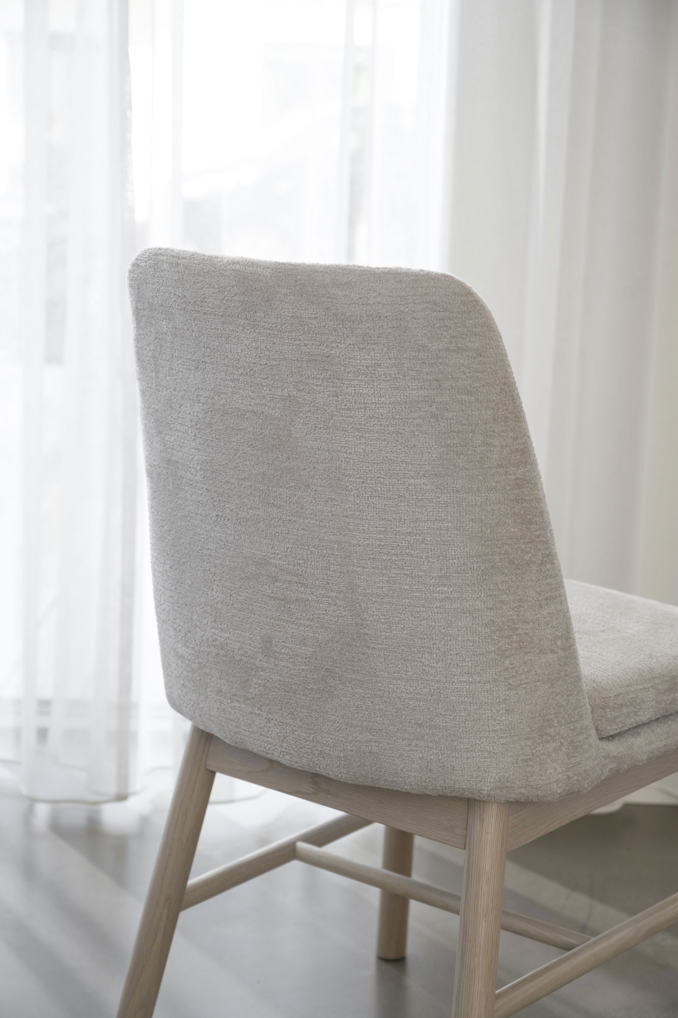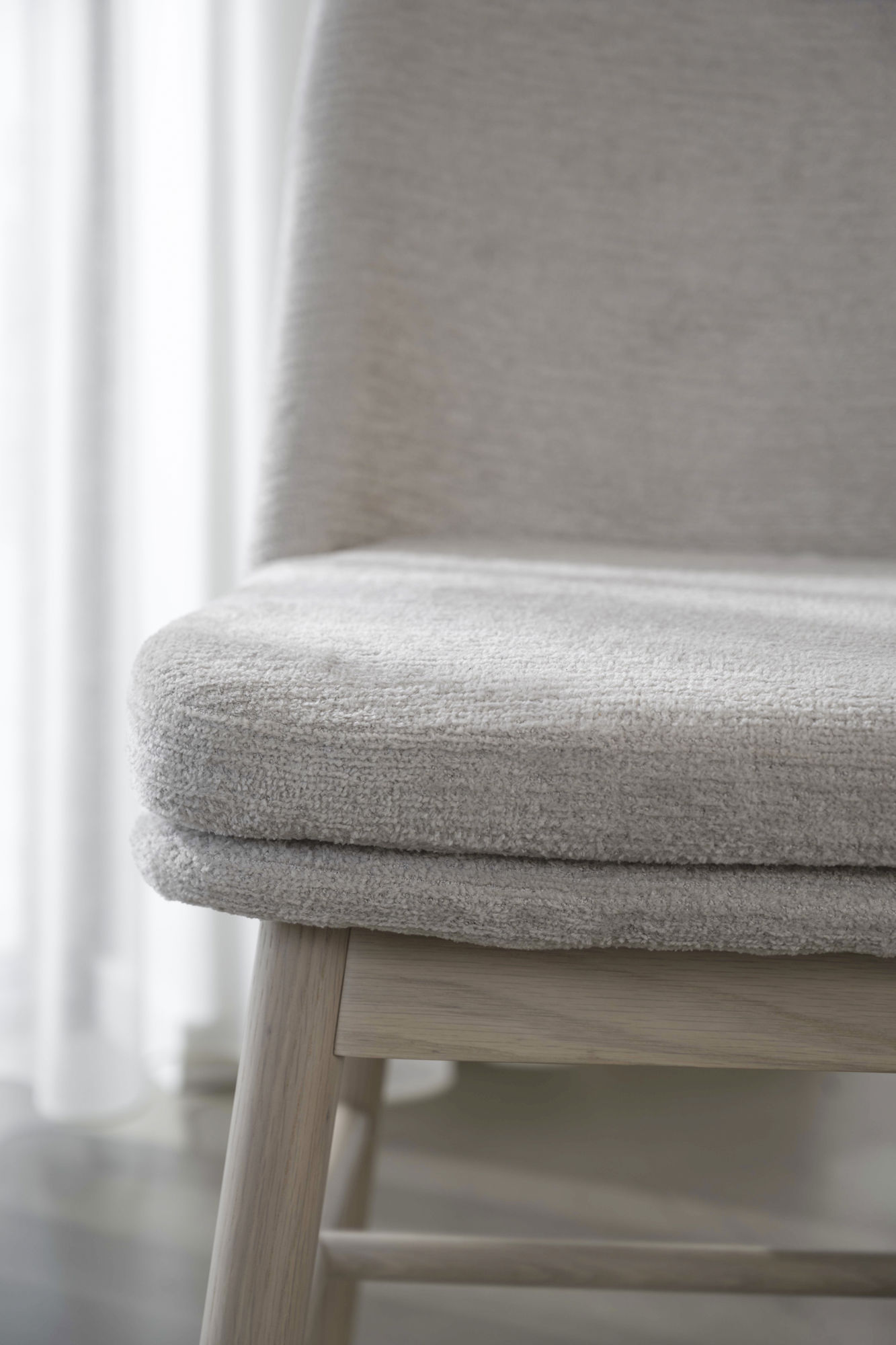 Amesbury stol med svarvade massiva träben i vitpigmenterad ek ger en naturlig elegans till ditt hem. Stolen är klädd med ljusbeige tyg som har fin struktur och är otroligt mjukt, samtidigt som det är väldigt slitstarkt. Tack vare den tjocka dynan, som dessutom är löstagbar, kan du sitta bekvämt under långa middagar och njuta av varje ögonblick. Finns även med träben i lackad ek samt brunlackad ek.