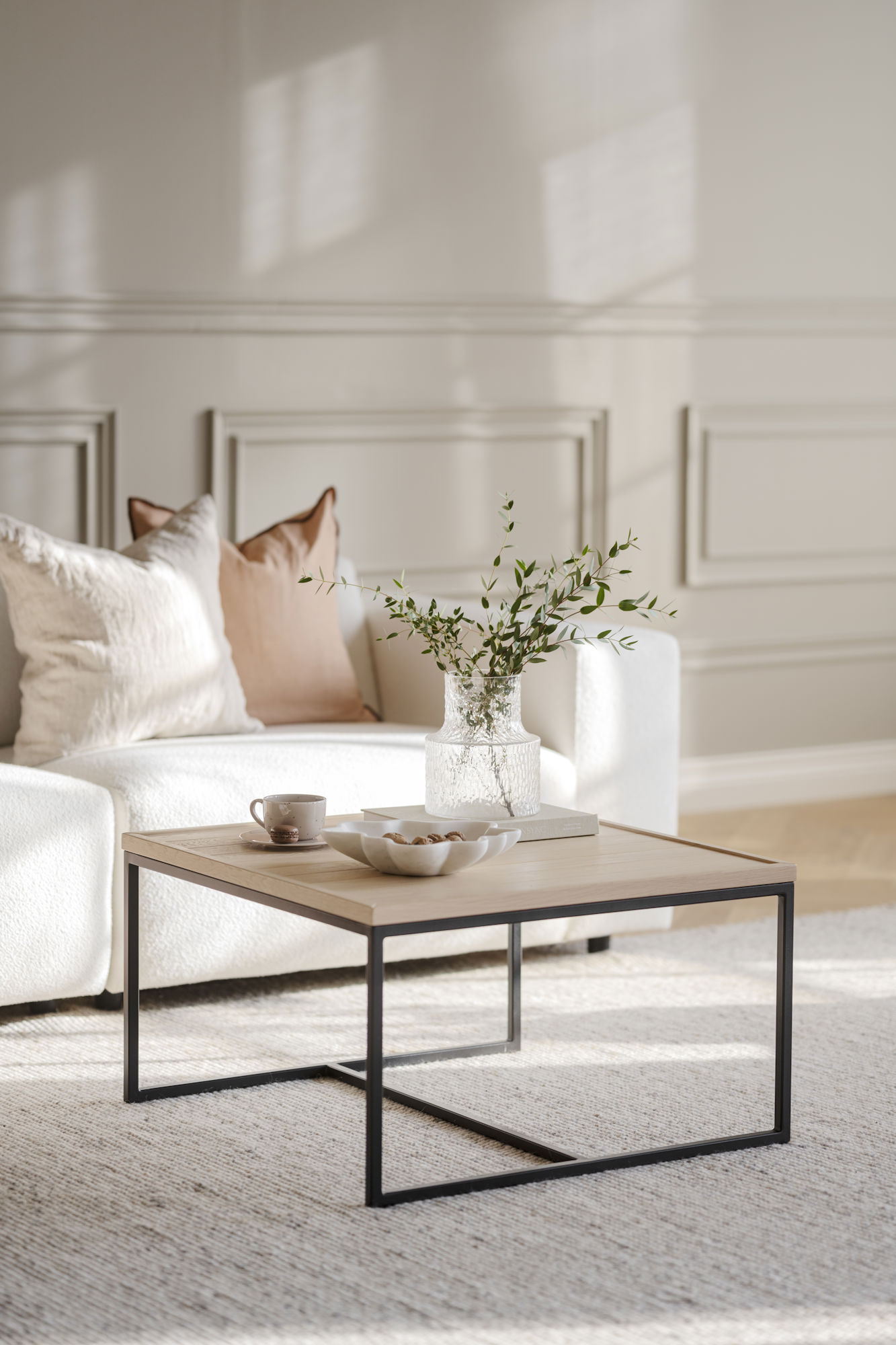 Deerfield soffbord 70x70 cm vitpigmenterad ek/svart metall