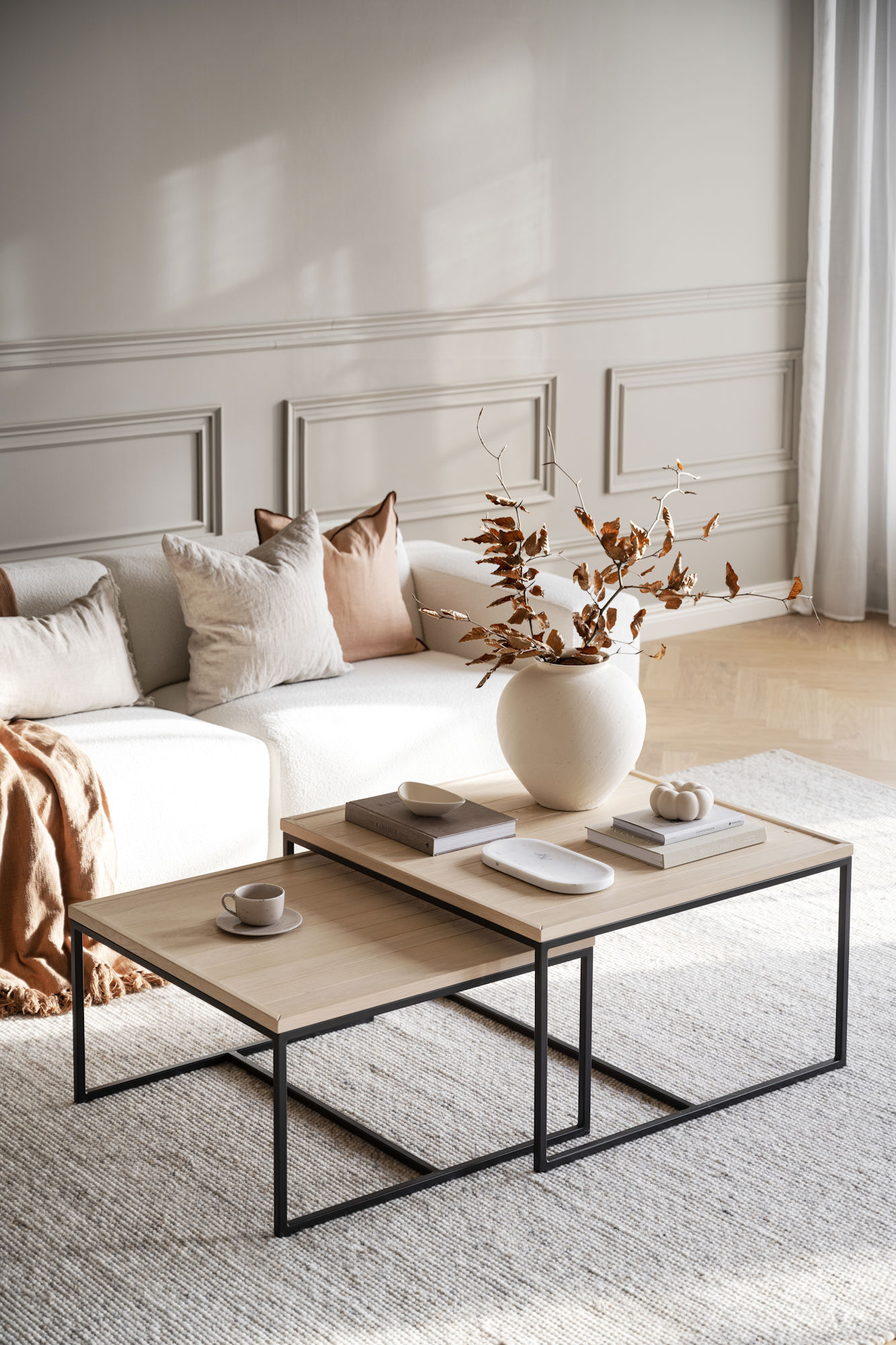 Deerfield soffbord i vitpigmenterad ek 70x70 cm är ett luftigt och stilrent soffbord i skandinavisk design. Bordskivan har ett vackert linjerat mönster av lackad ek. Den massiva kanten ramar in soffbordet på ett elegant sätt, medan det svarta metallunderredet ger en modern kontrast. Kombinera med Deerfield soffbord 80x80 cm och placera dem tillsammans som satsbord. För dig som föredrar en varmare färg finns Deerfield även tillgängligt i brunt.