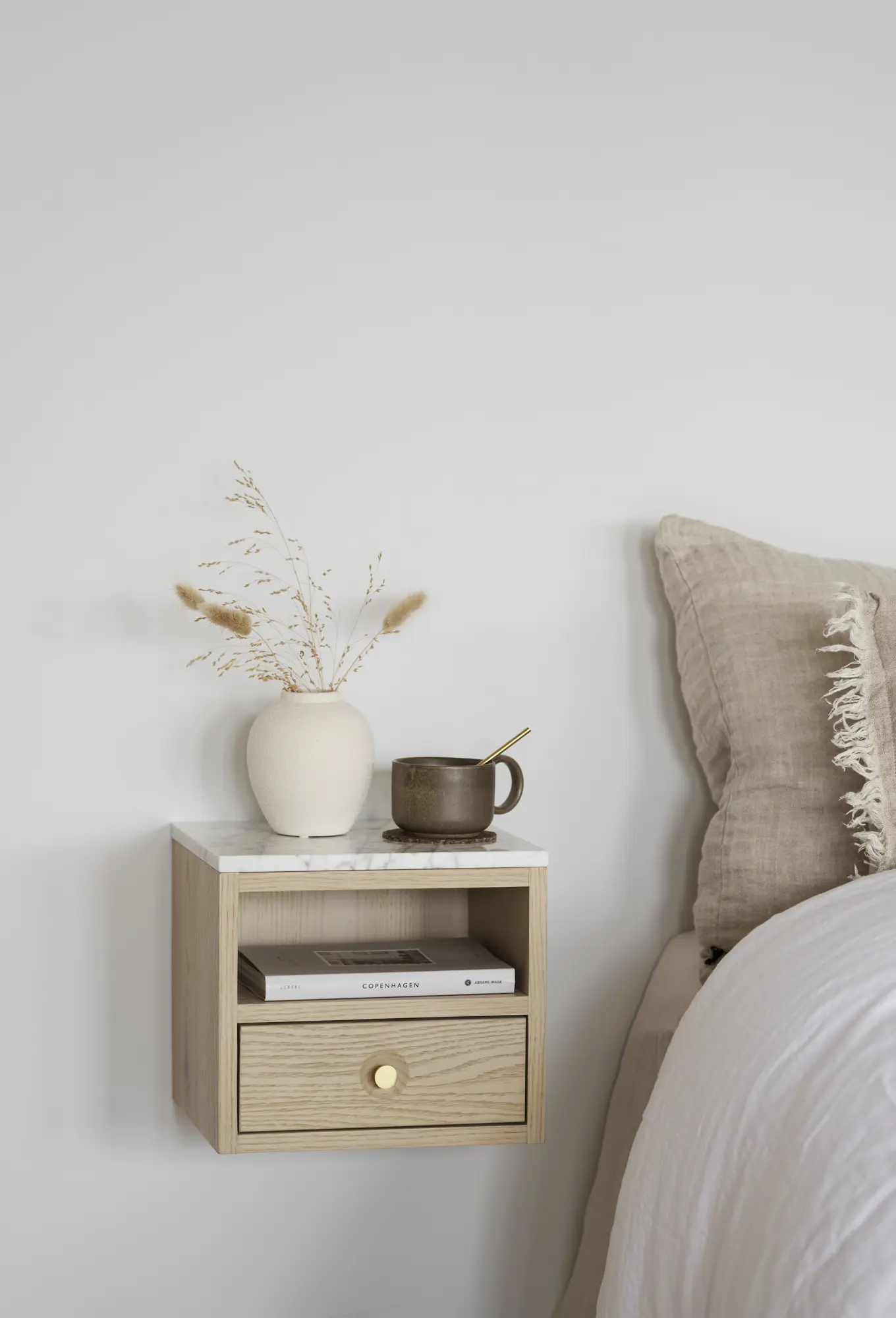 Whitmore sängbord vitpigmenterad ek/vit marmor