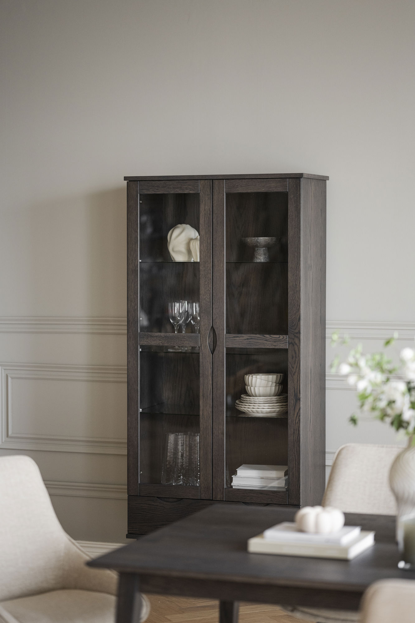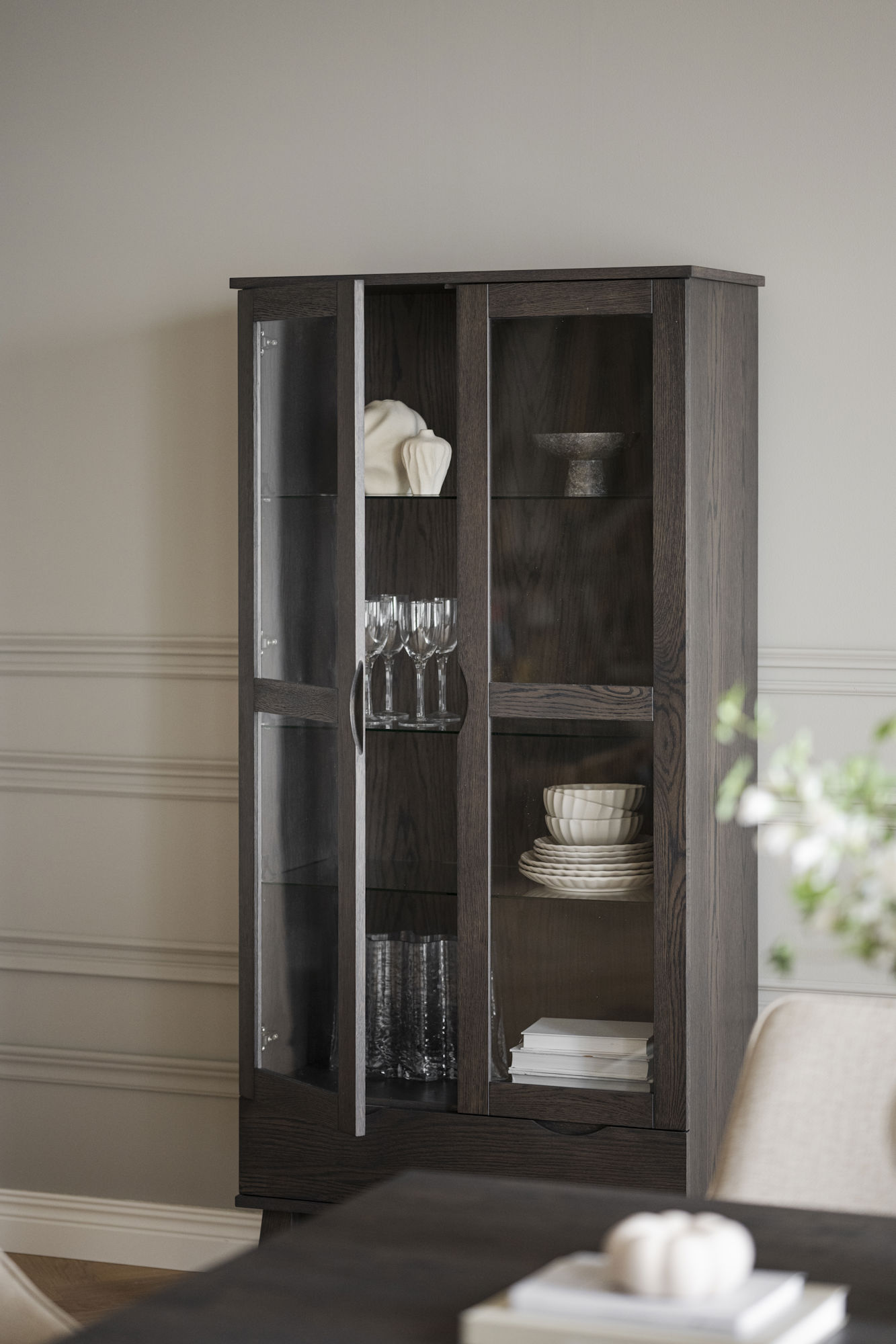 Filippa vitrinskåp 2D 1L mörkbrun ek