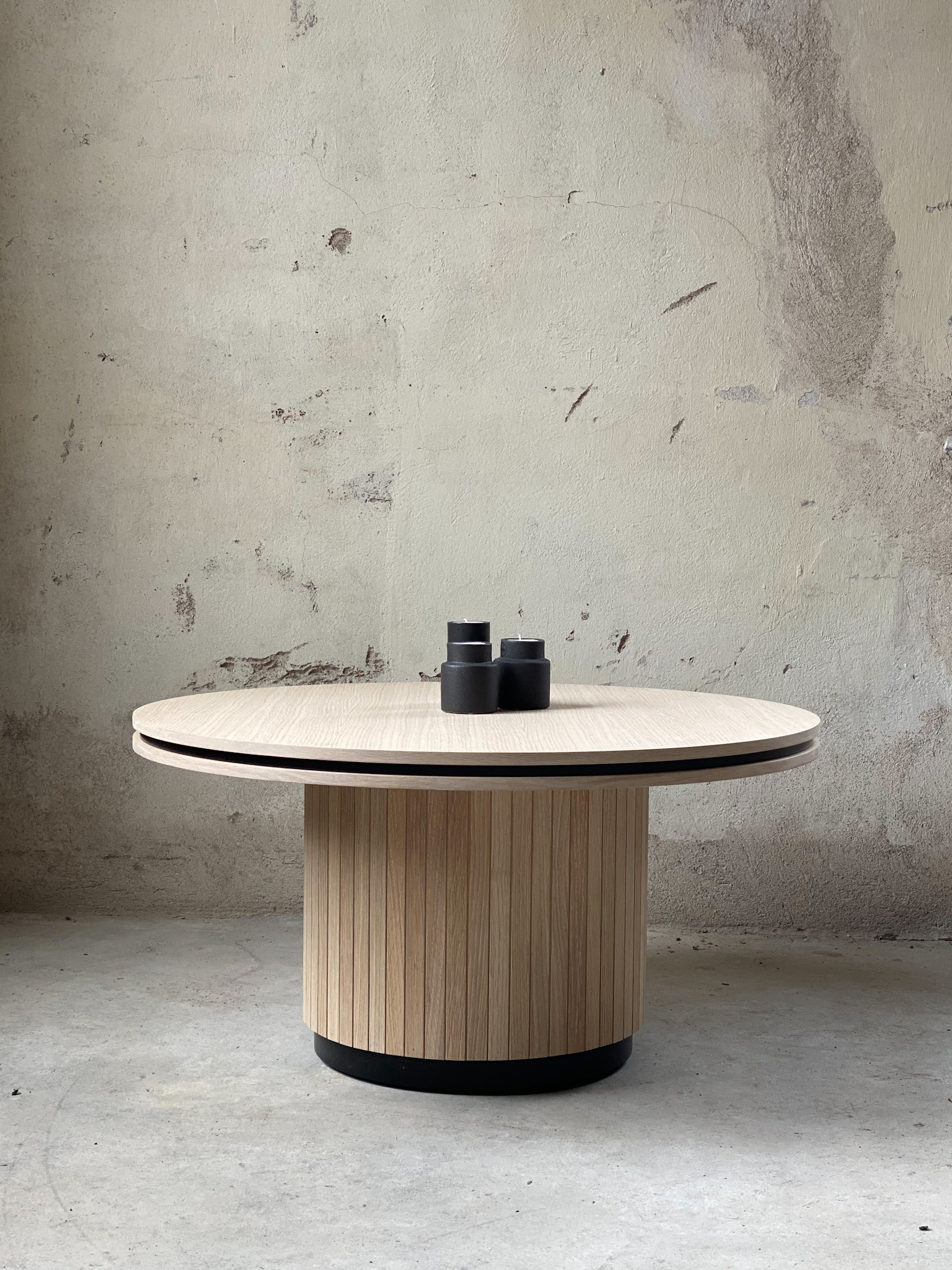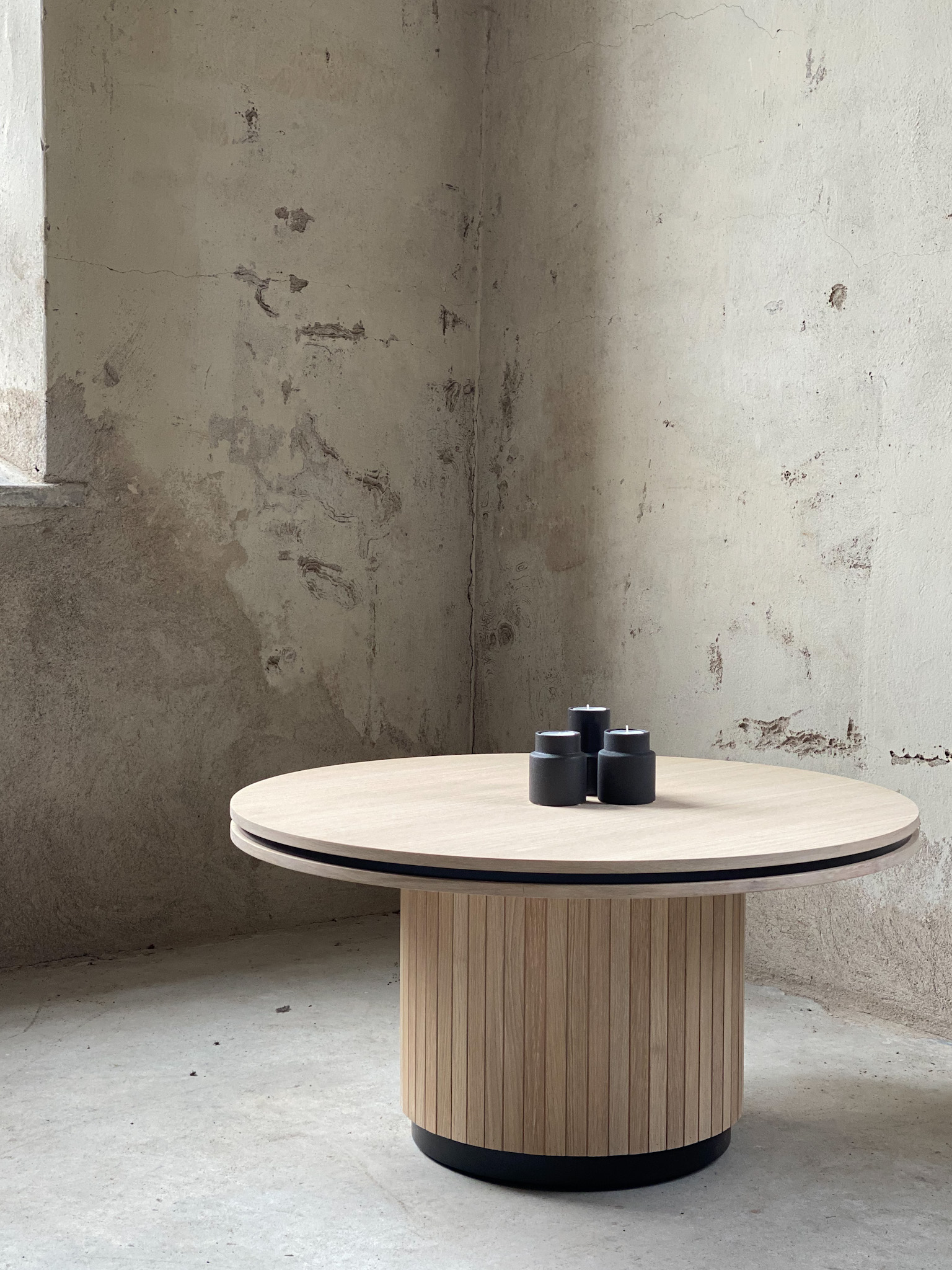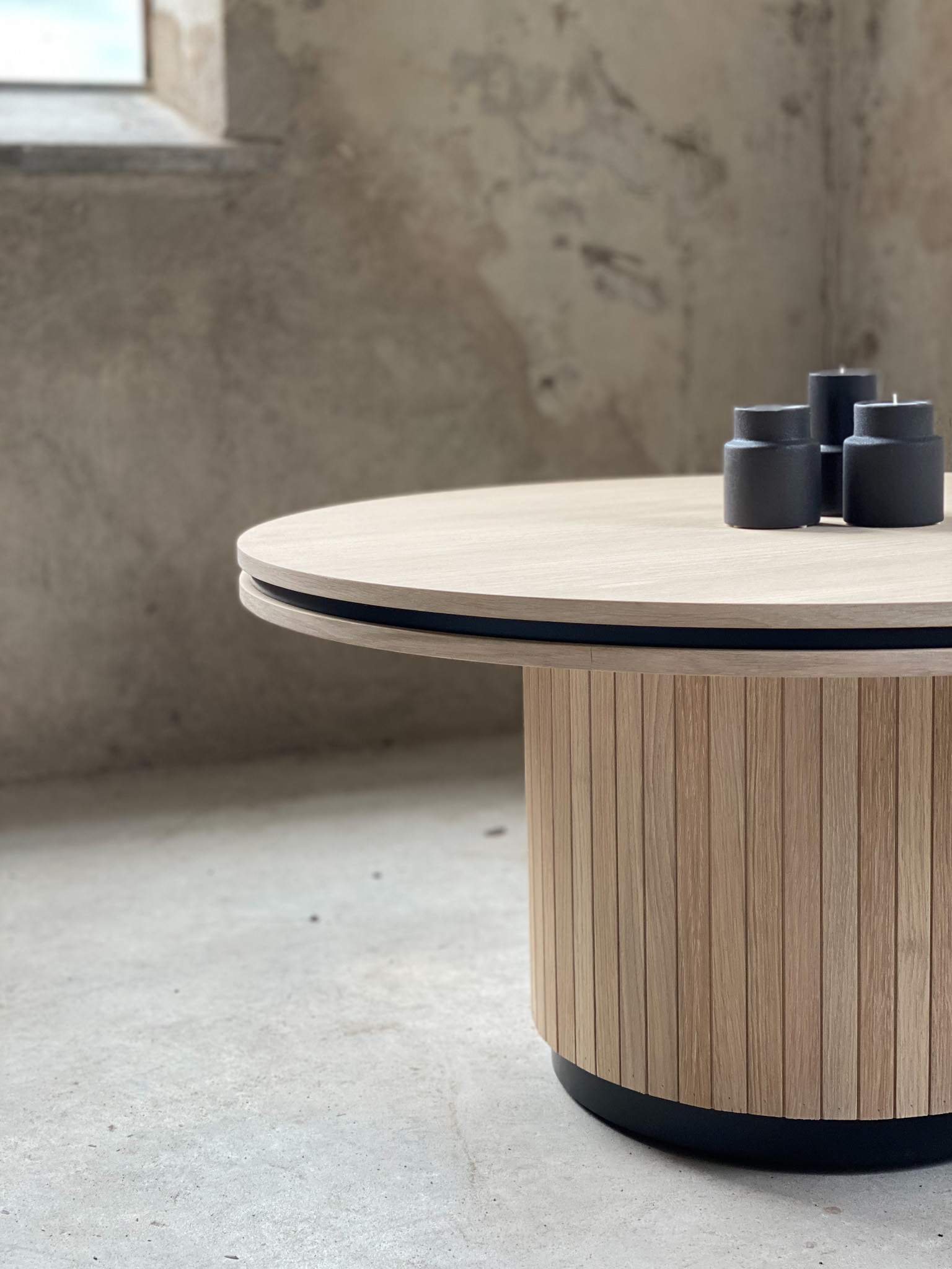 Arrie är ett vackert soffbord med smakfulla detaljer. Vaxad fanerad whitewash ek med svartmålad sockel.
