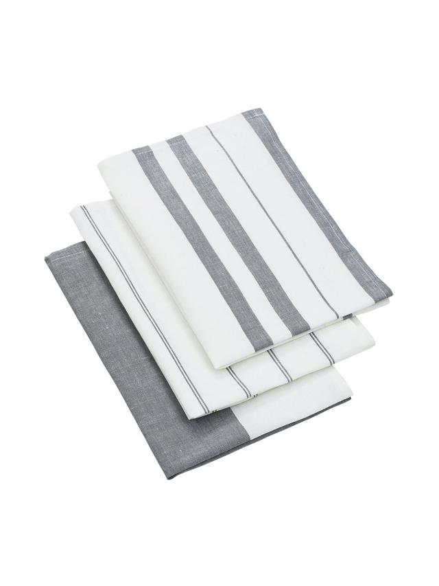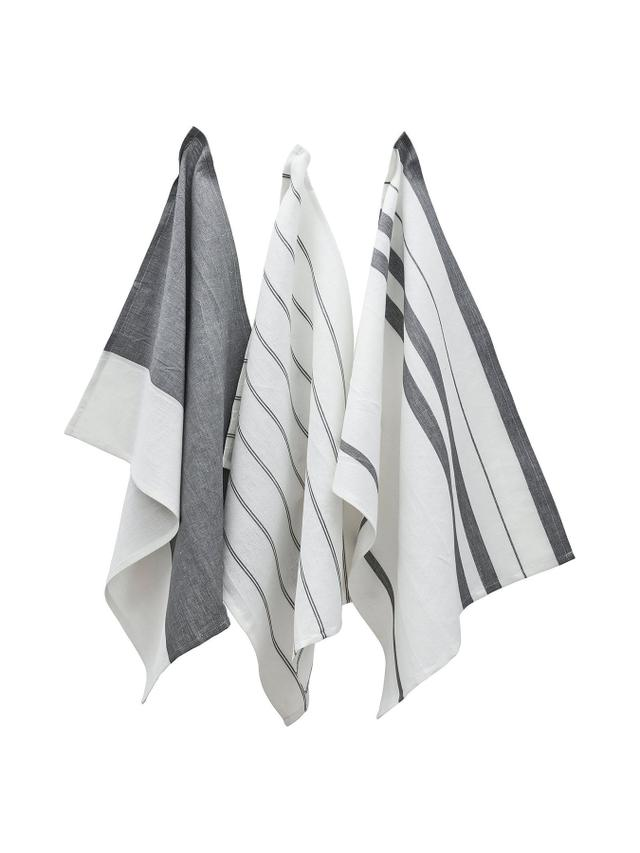 3-pack kökshanddukar i halvlinne kvalitet med matchande ränder. Kökshandduken har en lätt tvättad effekt. Lin absorberar bra, luddar inte och därför är det en utmärkt kvalitet för kökshanddukar.
