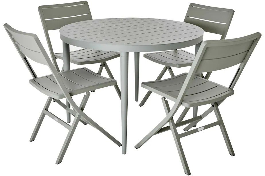 Det runda Bigby-bordet finns i två storlekar. Detta mindre bord har en diameter på en meter. De raka och eleganta detaljerna kontrasterar fint ihop med den runda formen och inbyggda skruvfötter i bordsbenen gör det lätt att parera ojämnheter i underlaget.