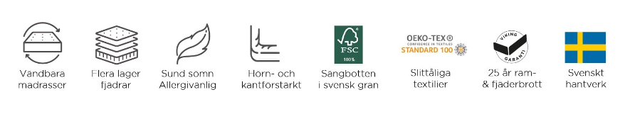 Lägre underbädd med kraftig träram av FSC-märkt svensk gran och de dubbla pocketlagerna ger en stabil säng med minimal rörelse. Sängen har en hel kassett vilket innebär att det inte bildas skarvar i mitten av sängen. Välj mellan flera olika färger och den fasthet som passar dig.