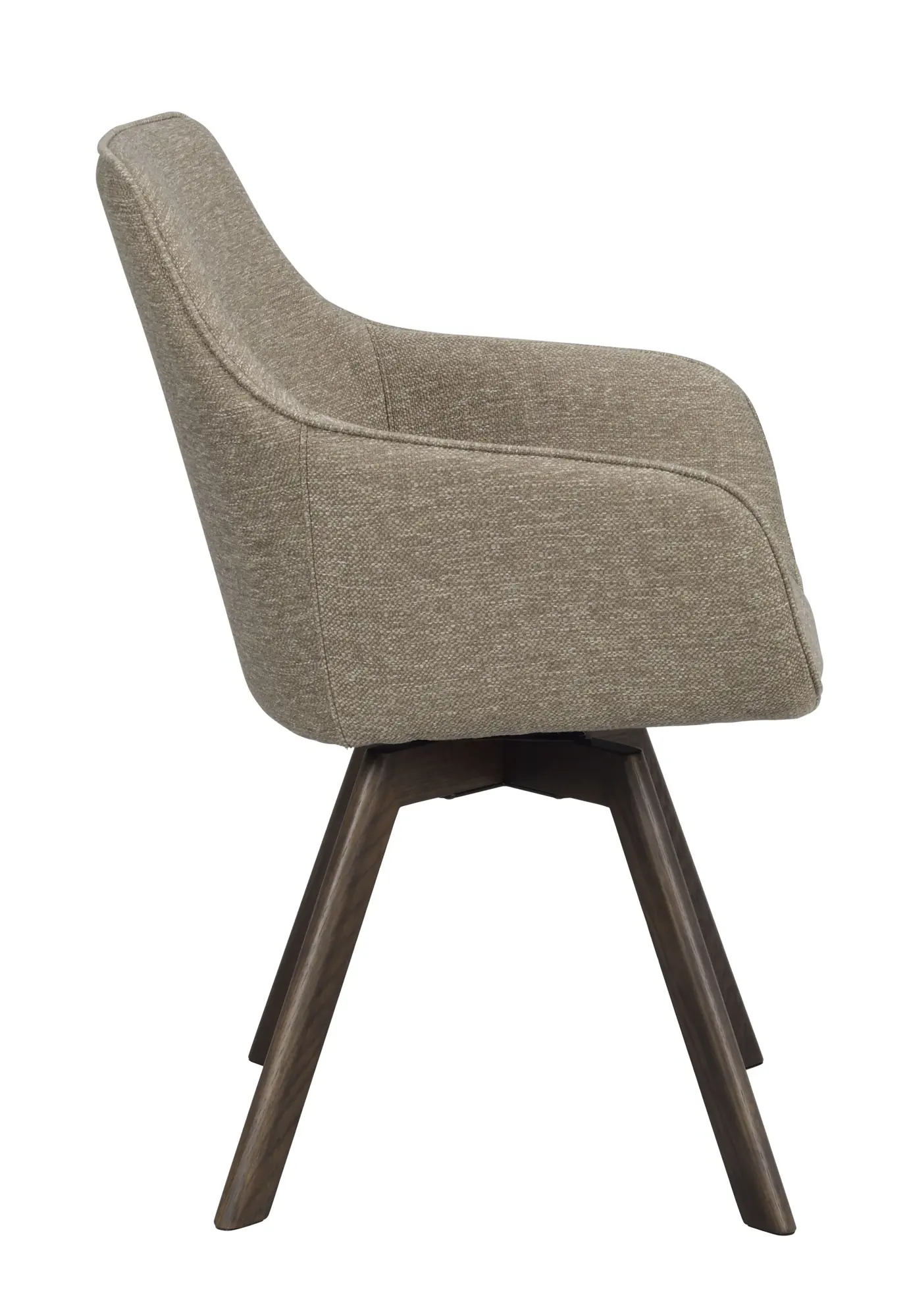 Alison karmstol mörkbeige tyg/bruna ekben snurr