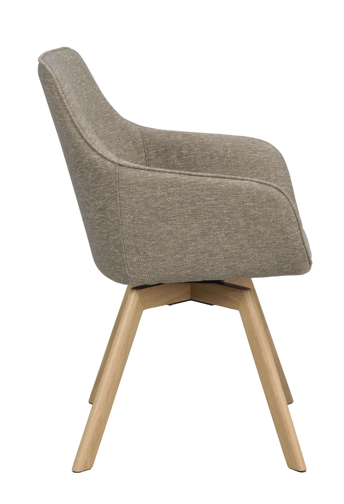 Alison karmstol mörkbeige tyg/vitpigmenterade ekben snurr