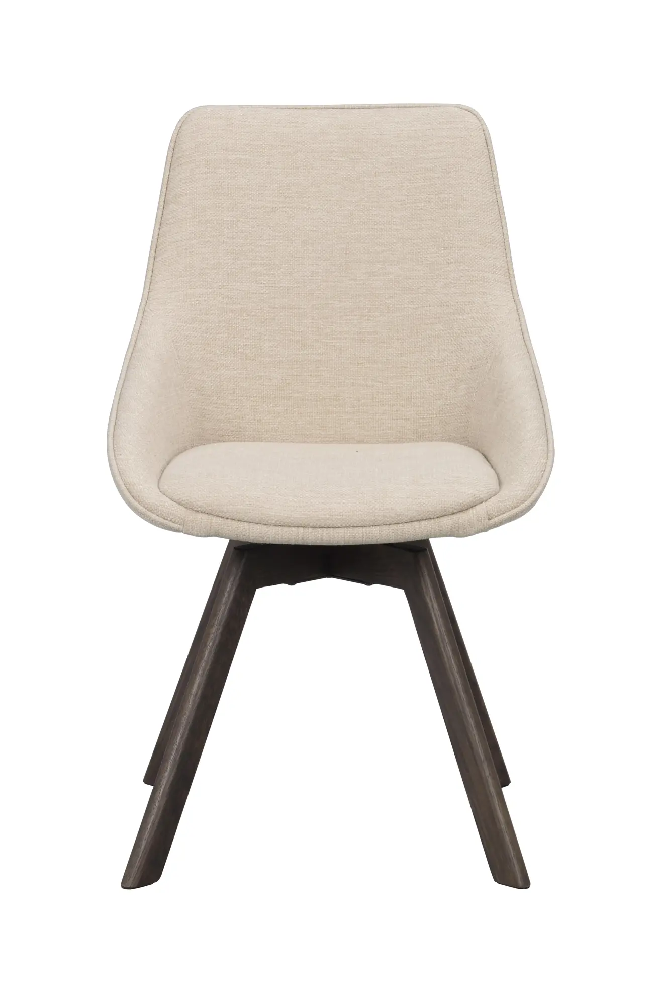 Populära Alison stol med träunderrede och snurrfunktion. Här syns den i ett tåligt ljusbeige tyg och med ben i lackad brun ek. Alison har en stoppad sits med hög sittkomfort i kupad design och ben med snurrfunktion i 360 grader. Stolen passar perfekt runt matbordet men även som udda stol till skrivbordet. Alison är FSC®-certifierad och finns även i andra jordnära färger.