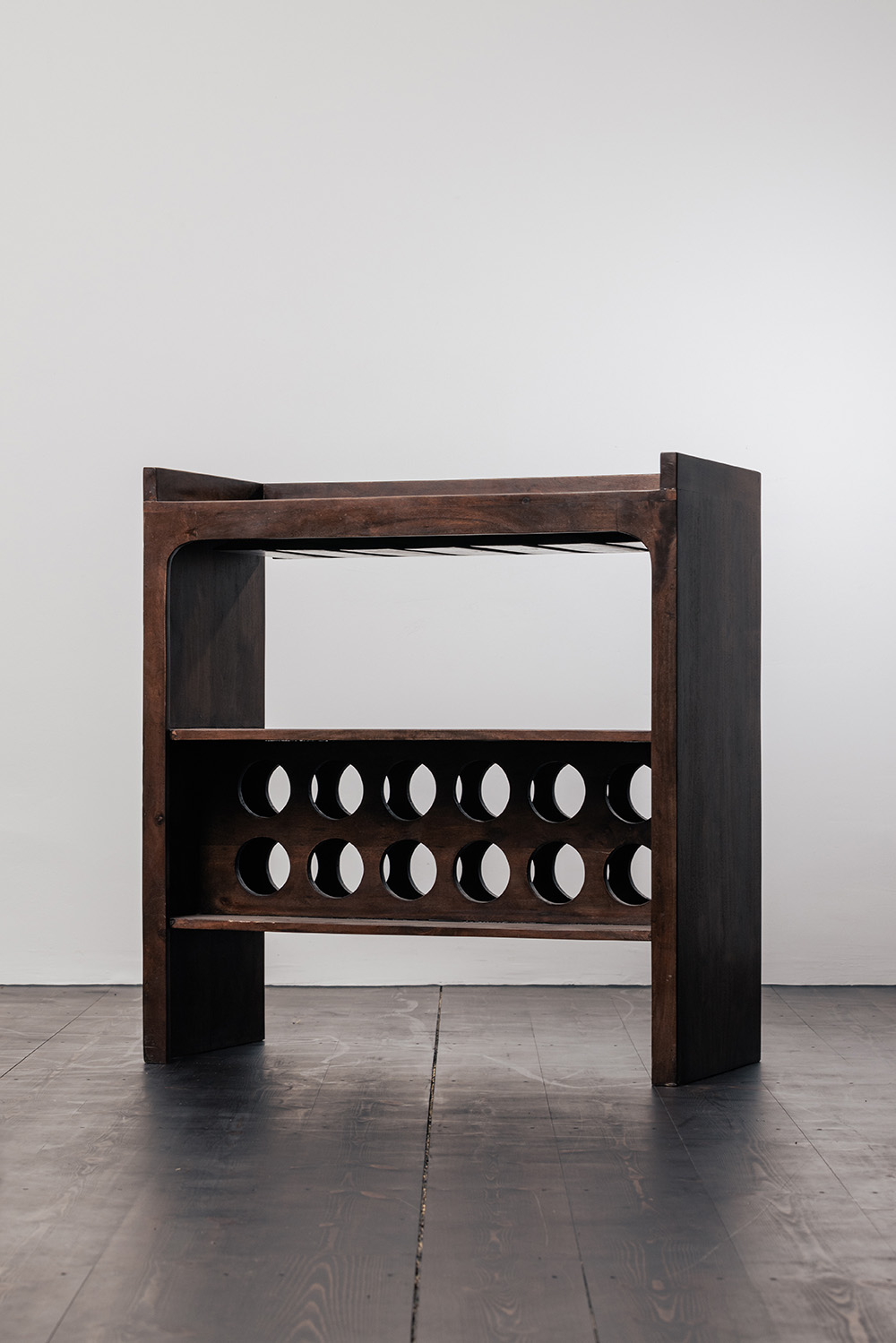 Seattle sidetable i mörk brun med både förvaring för glas och flaskor. Tillverkad i Akacia.