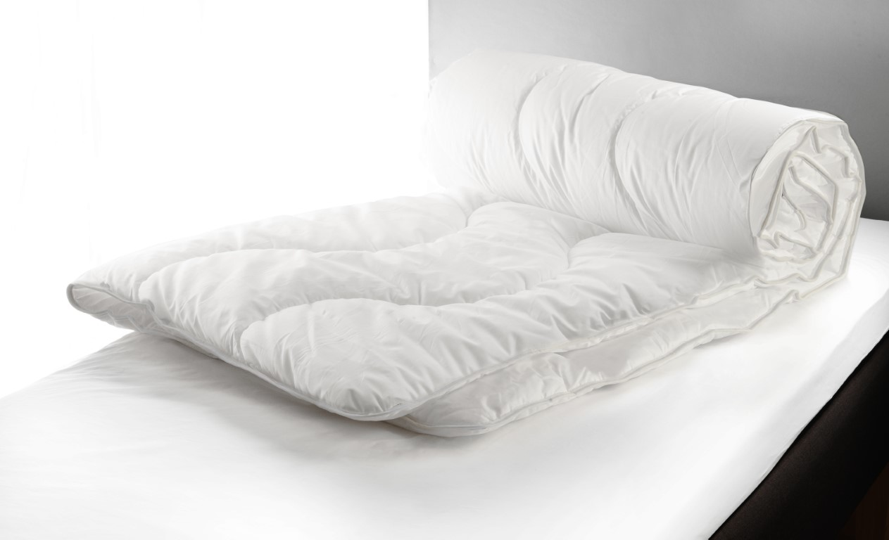 Linnea täcke medium 150×210 cm, stoppvikt 700 g. Ett prisvärt täcke i fin kvalité tillverkat i ett tyg av 65% polyester och 35% bomull. Stoppad med Softfilling - silikoniserad polyesterhålfiber. Täcket är slingstickat och bandkantat med ett vitt band.