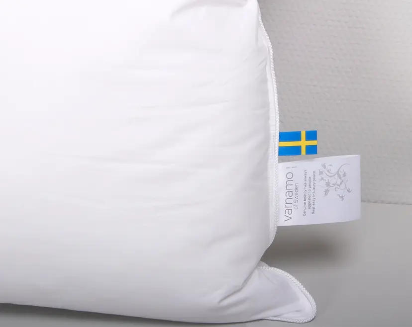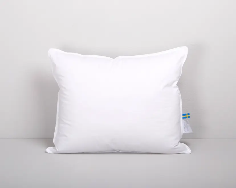 Klassisk bollfiberkudde i ekologisk bomullscambric. Blåklocka är gjort av ett tyg i 100% ekologisk bomullscambric som ger kudden en härlig krispig känsla, precis som på hotell. Stoppad med 100% silikoniserad LENTUS bollfiber - certifierad återvunnen polyesterhålfiber. Kudden håller en mycket hög kvalitet och har otroligt fina tvättegenskaper. Sydd med dubbla kantsömmar och kantad med en lyxig vit snörpiping.
