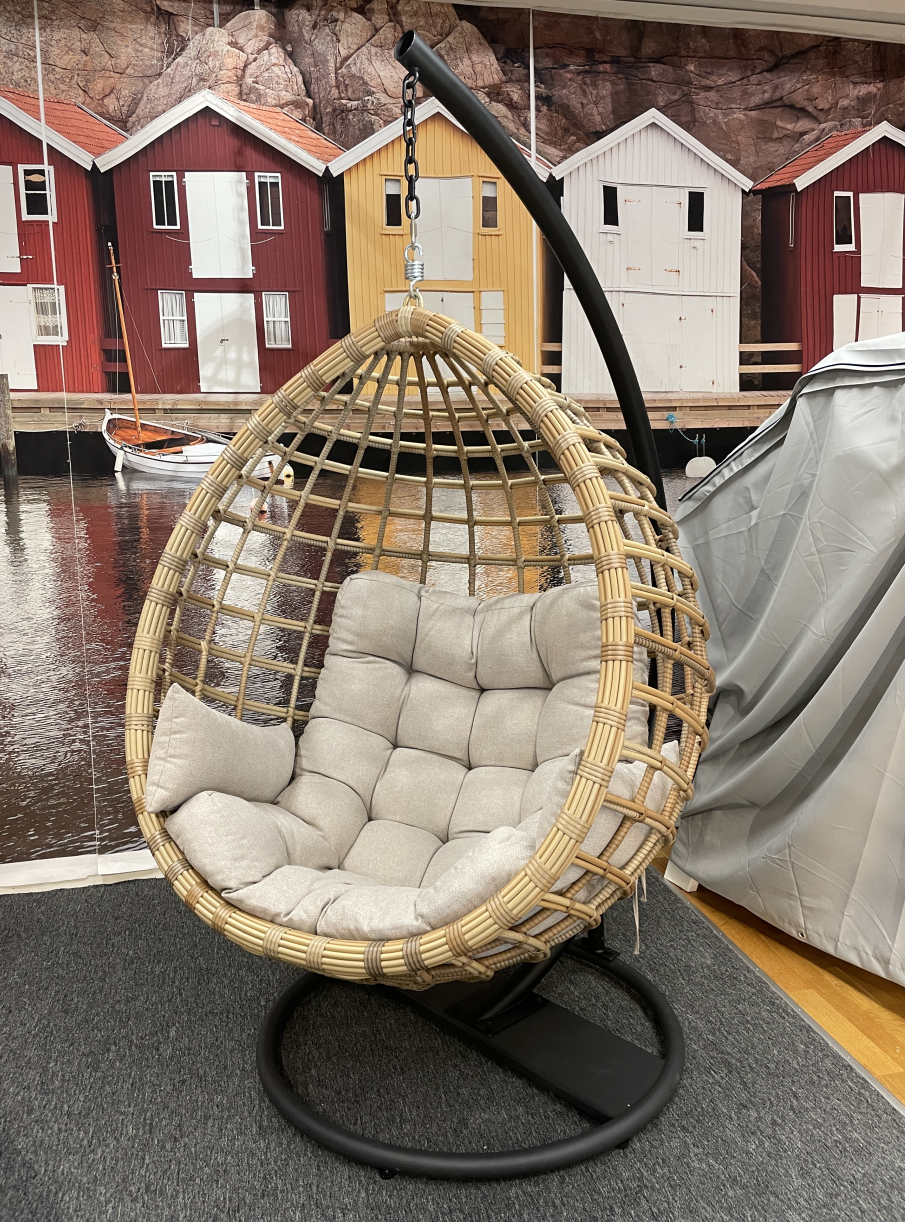 Solside är en stor, riktigt skön hängade vilstol i naturfärgad konstrotting. Hänggungan kommer med en rejäl beige dyna som ger hängstolen en otroligt skön komfort. Levereras delvis monterad.