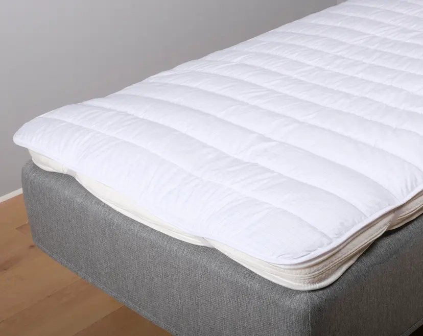 Madrasskyddet med multifunktion. Hjälper till att hålla ett jämnt sovklimat i sängen. Tillverkad i ett tyg av 60% polyester TopCool, 39,4% polyester och 0,6% Carbon. Tygets unika egenskaper transporterar bort fukt och hjälper kroppen till en avstressad sömn. Stoppad med silikoniserad Softcool fiber - certifierad återvunnen polyesterhålfiber. Madrasskyddet är kanalstickat och bandkantat med ett vitt band.