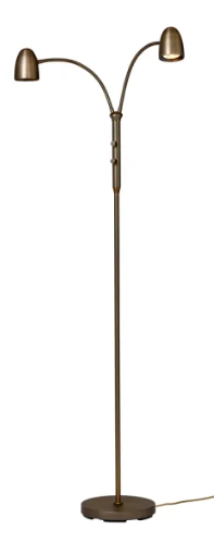 Svensktillverkad golvlampa med dubbla lamphuvuden.