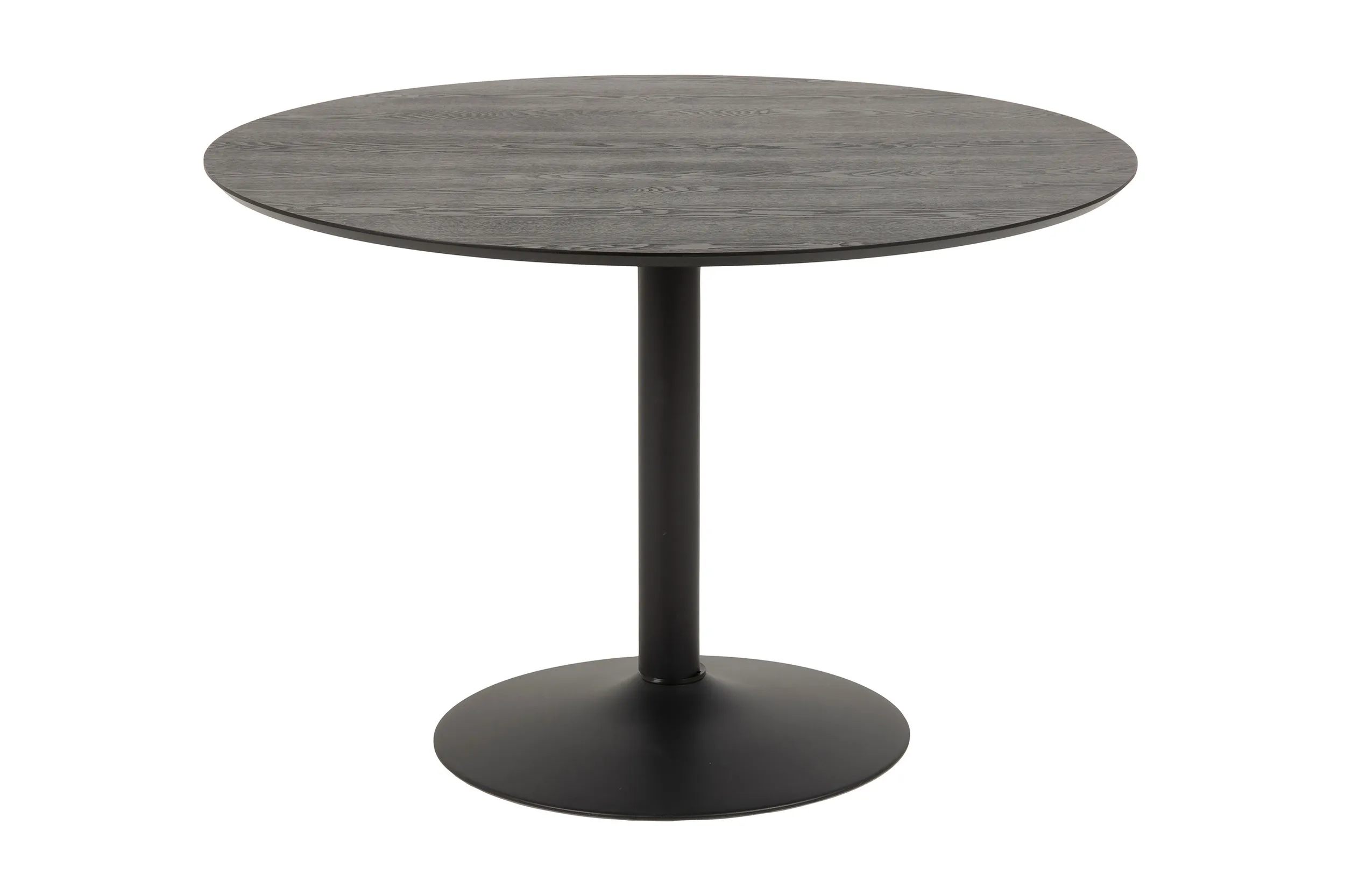 Ibiza, runt matbord i mattsvart lackad askfaner från Actona. Tack vare sin runda form är detta bord ett perfekt komplement till mindre rymliga matplatser eftersom det sparar utrymme. De noggrant utvalda materialen gör detta matbord lätt att underhålla, och den breda basen i trumpetmetall säkerställer hög stabilitet på bordet.