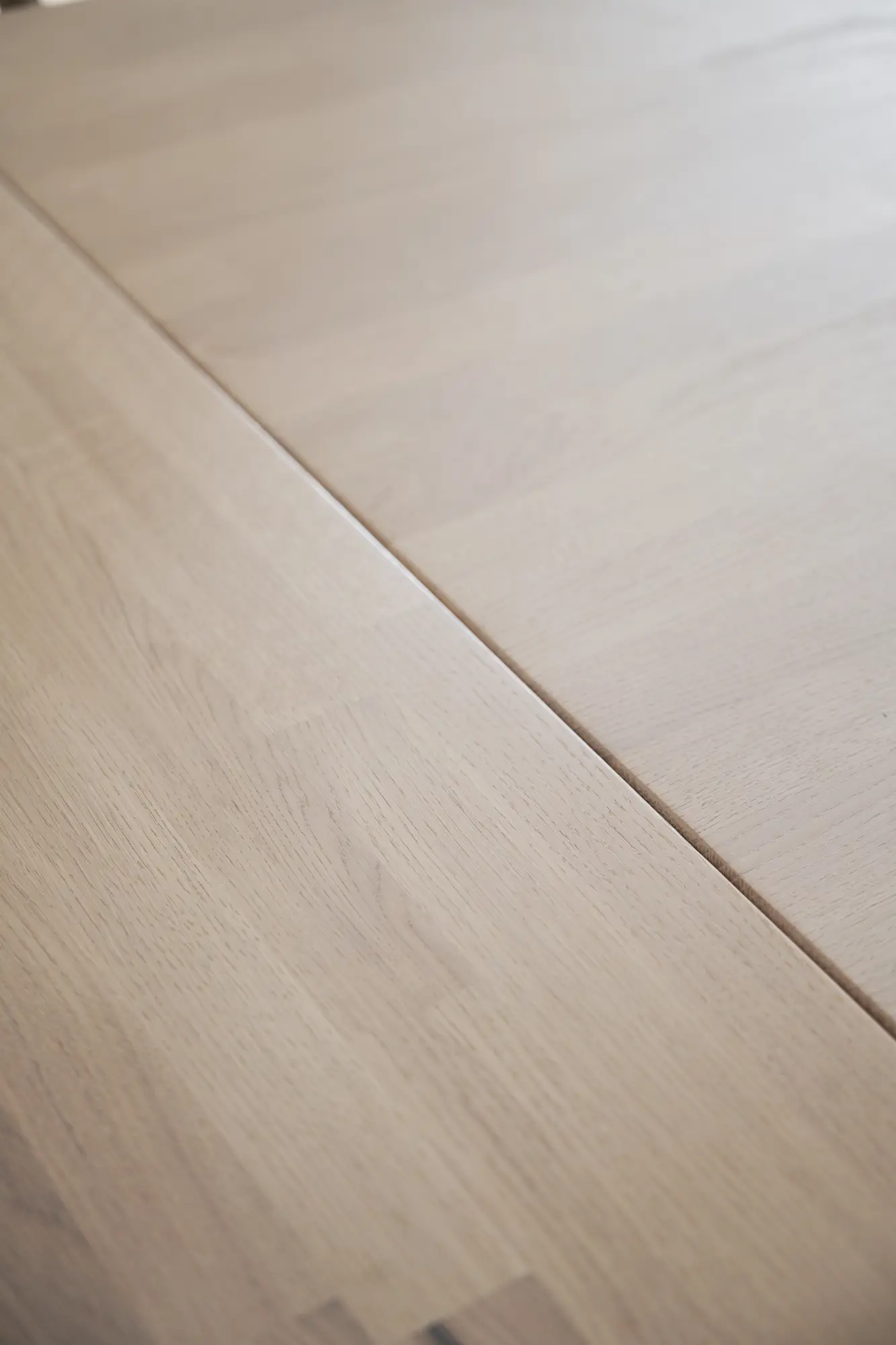 Markham tilläggsskiva 45 cm i massiv vitpigmenterad ek passar till Markham matbord i samma färg. Tilläggsskivor kan adderas på båda sidor och köps styckvis. Matbordet som är 140 cm kan förlängas till 185 cm med en tilläggsskiva eller till 230 cm med två tilläggskivor. Det större matbordet som är 180 cm kan förlängas till 225 cm med en tilläggsskiva eller till hela 270 cm med två tilläggskivor. Massiv fingerskarvad ek i toppen, massiv ek hela lameller i övriga detaljer.