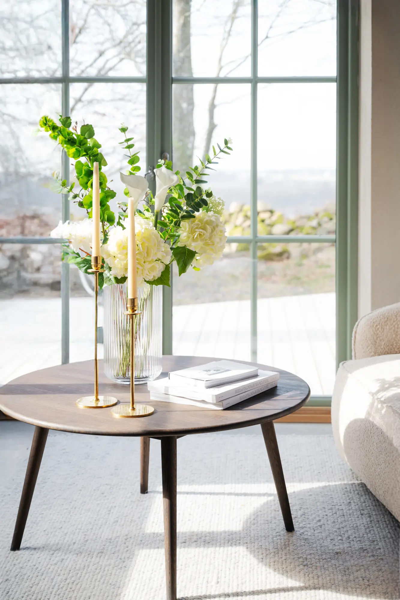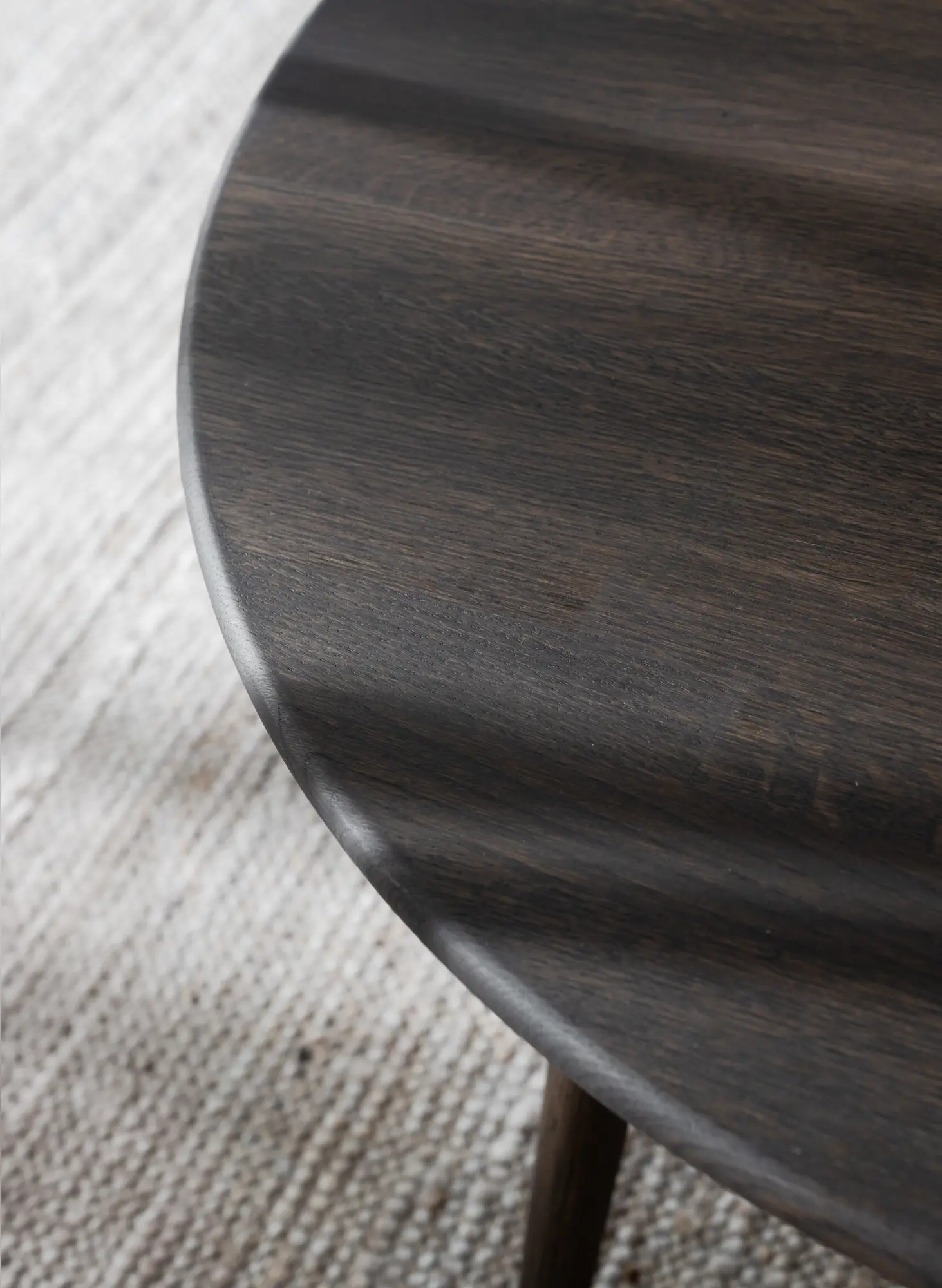 Tompkins soffbord Ø90 är ett klassiskt soffbord i skandinavisk design, tillverkat av massiv brunoljad ek. De rundade detaljerna på både bordsskiva och ben skapar en naturlig och mjuk känsla. Det runda soffbordet finns i två storlekar som kan användas separat eller tillsammans som satsbord. I kollektionen finns också ellipsformat och kvadratiska soffbord. Välj mellan vitpigmenterad och brunoljad ek. Alla modellerna är tillverkade av FSC®-certifierat trä, vilket garanterar ett hållbart skogsbruk. Tillverkat i Europa.
