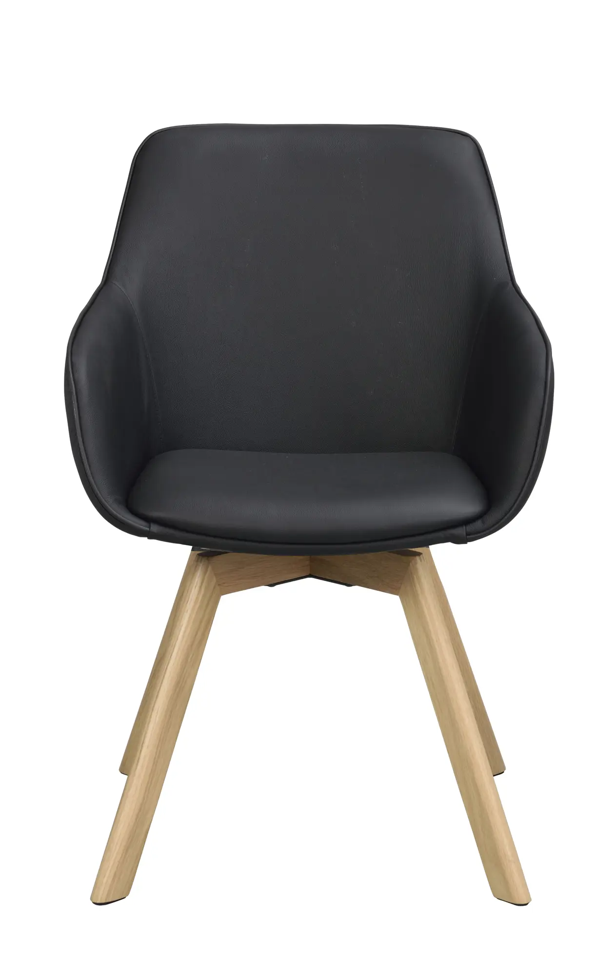 Alison karmstol svart läder/vitpigmenterade ekben snurr