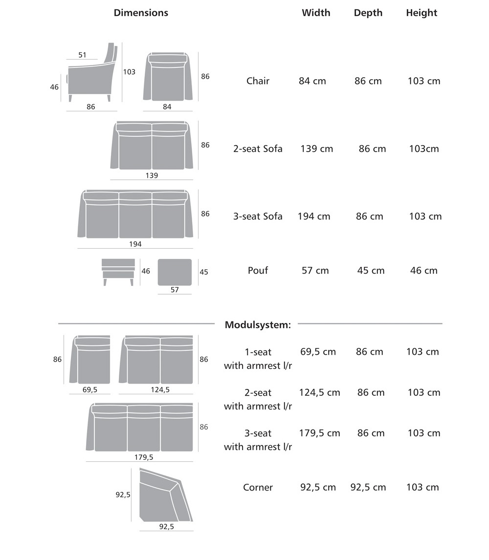 Anne är en omtyckt fåtölj med högre rygg och en stadig sittkomfort. Det finns många olika tyger och läder att välja mellan. Man kan välja mellan träben i olika färger som har en höjd på 12 cm. Anne fåtölj passar perfekt med soffan som ingår i samma produktserie.