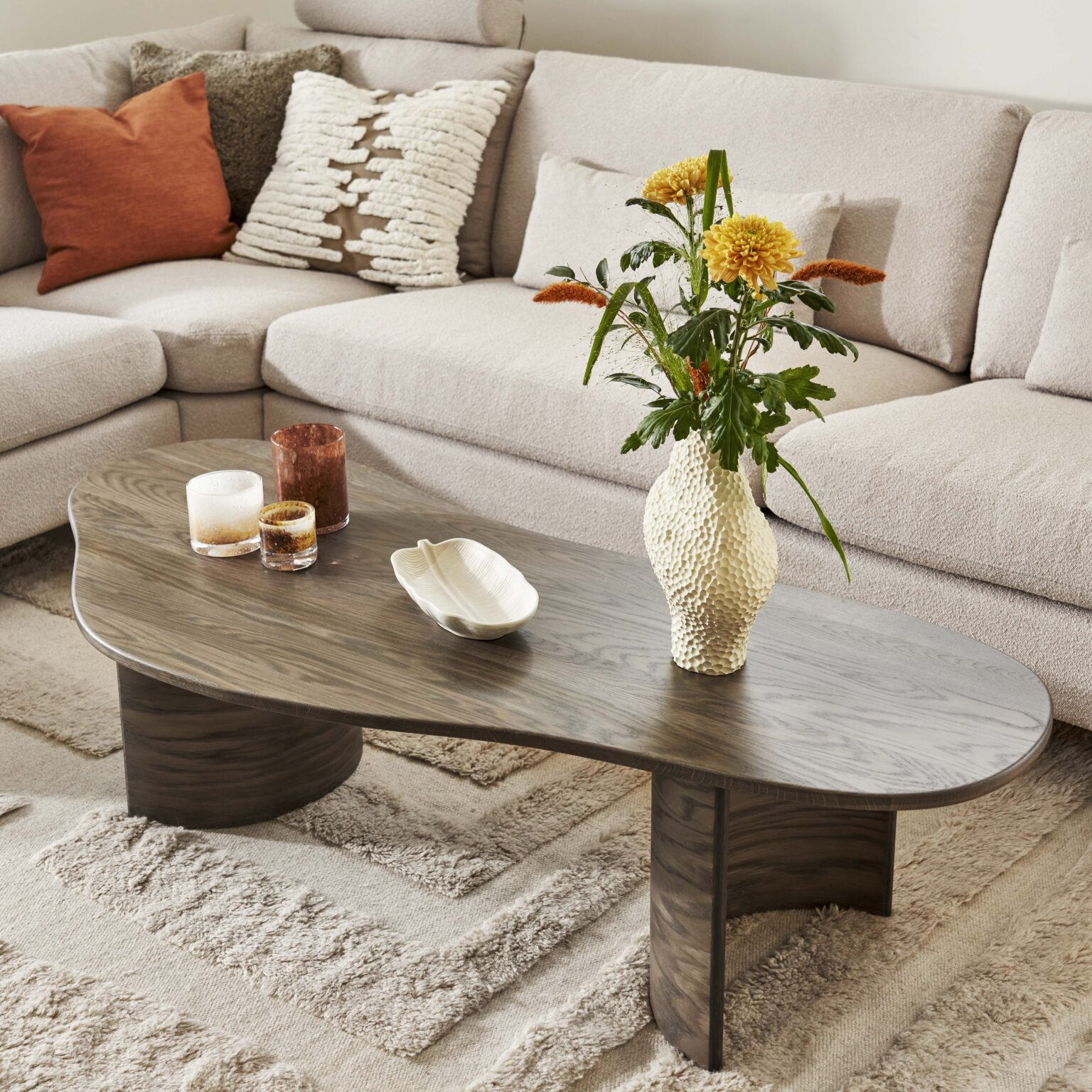 Tillverkat av massiv ek ger Curve en naturlig träkänsla som lyfter fram elegans och lyx i ditt vardagsrum. Den asymmetriska formen av soffbordet gör det till en spännande tillskott till din inredning och garanterar att det kommer att dra blickarna till sig. Med en generös längd på 150 cm, finns det gott om utrymme att placera dina favoritböcker, vaser eller andra dekorativa föremål på bordet. Välj mellan 9 olika träfärger för att hitta en färg som passar din personliga stil och inredning. Så om du söker efter ett praktiskt, trendigt och modernt soffbord som garanterat blir en uppskattad detalj i ditt vardagsrum, är Curve det självklara valet för dig.