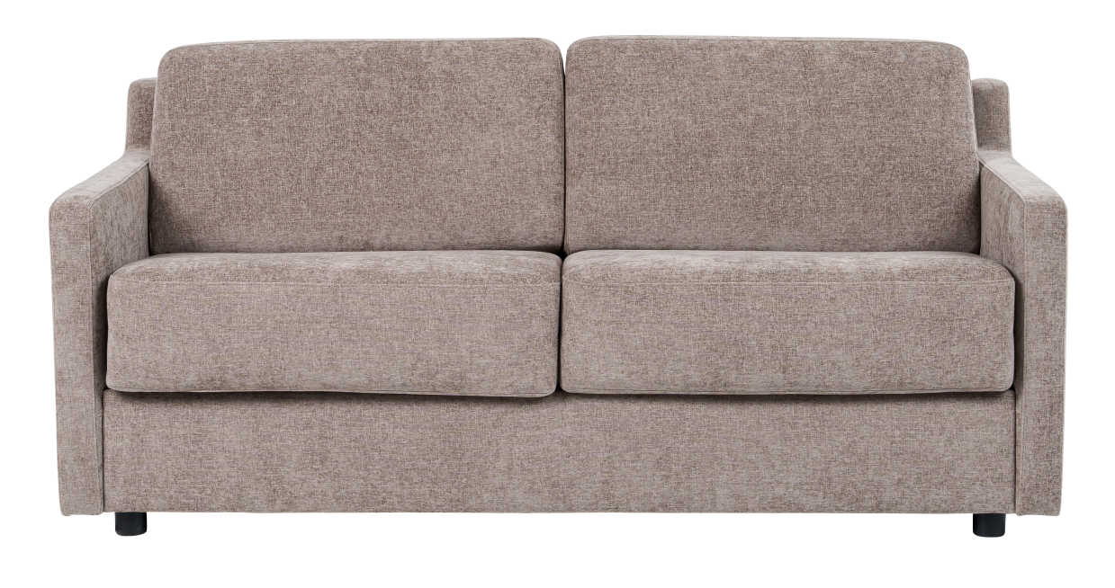 Här som bäddsoffa med bäddmått 160x200 cm i tyg Ponza taupe. Denna med praktisk Easymove - som förenklar om du vill flytta på soffan.
