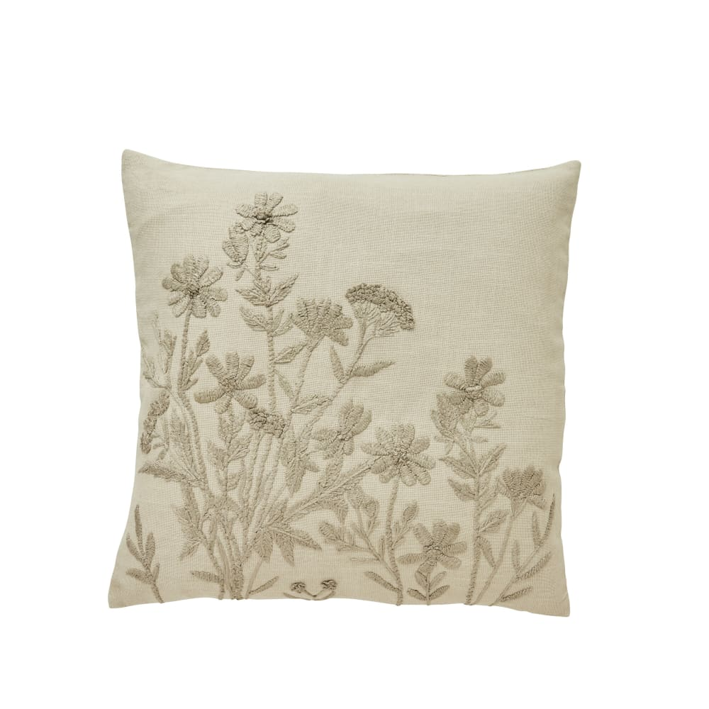 Ruth är en riktigt fin kudde i måttet 50x50 cm. Fodralet är prydd med broderade blommiga detaljer som verkligen sticker ut och utstrålar en känsla av femininitet. Den här kudden är tillverkad av 100 % bomull och är både slitstark och snygg. Dess jordnära färger och blommönster lägger till sofistikering till alla utrymmen.