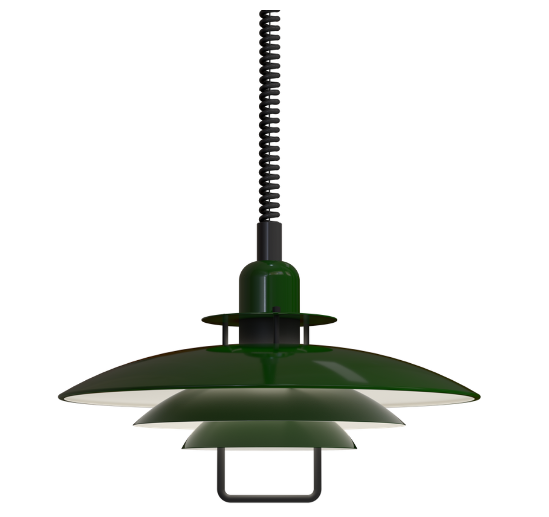 Primus II Ø43 taklampa i skogsgrön/mattsvart är en mycket populär pendel som har en given plats över köksbordet. Den finns i flera härliga färger och du hänger enkelt upp den på en takkrok. Tack vare sladdens spiralhiss kan du enkelt justera den i valfri höjd.