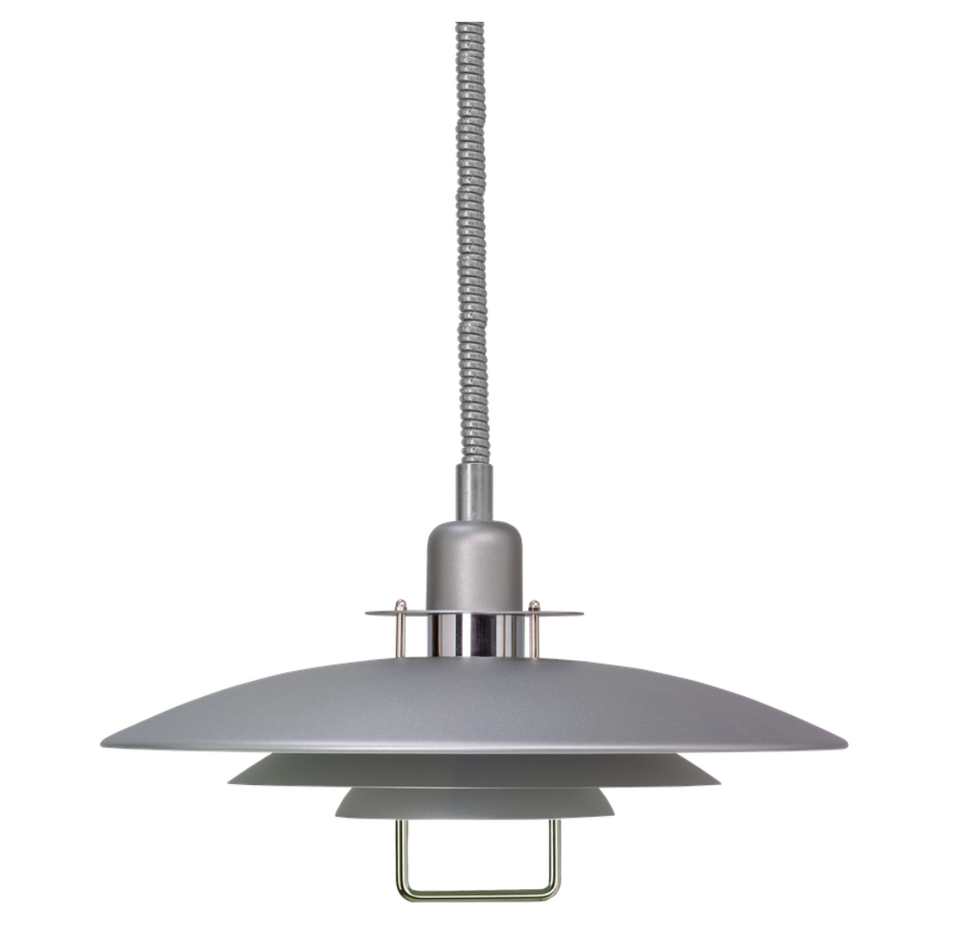 Primus II Ø43 taklampa i gråstruktur är en mycket populär pendel som har en given plats över köksbordet. Den finns i flera härliga färger och du hänger enkelt upp den på en takkrok. Tack vare sladdens spiralhiss kan du enkelt justera den i valfri höjd.
