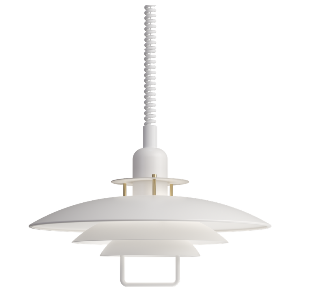 Primus II Ø43 taklampa i mattvit/mässing är en mycket populär pendel som har en given plats över köksbordet. Den finns i flera härliga färger och du hänger enkelt upp den på en takkrok. Tack vare sladdens spiralhiss kan du enkelt justera den i valfri höjd.