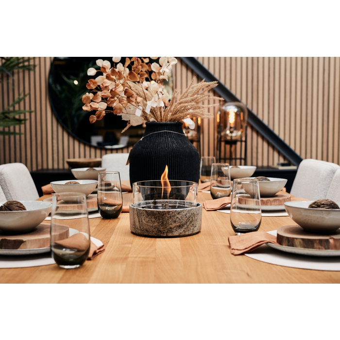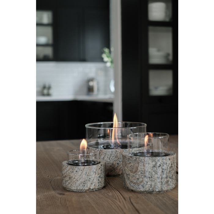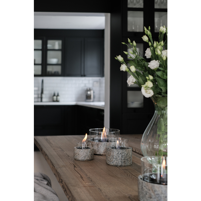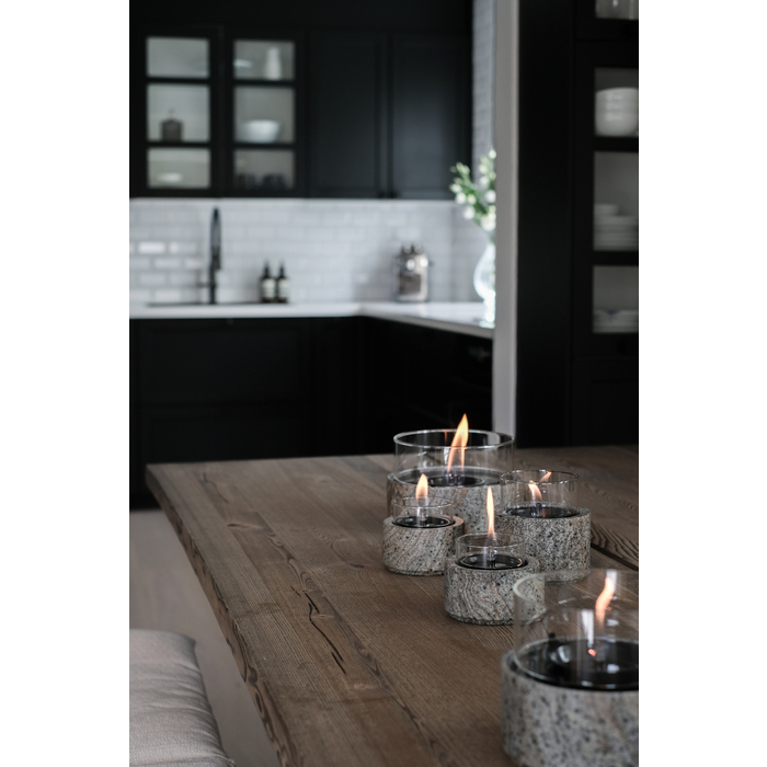 TenderFlame Café bordslykta med bas i grå keramik, glas och rostfri stålveke. Volym 2,5 dl. Med sin eleganta design och livfulla låga sprider lyktan ett behagligt ljus och värme som lyfter både inomhus- och utomhusmiljöer. Placera den på matbordet under en mysig middag, på soffbordet för en lugn kväll eller ute på terrassen för att skapa den perfekta atmosfären.