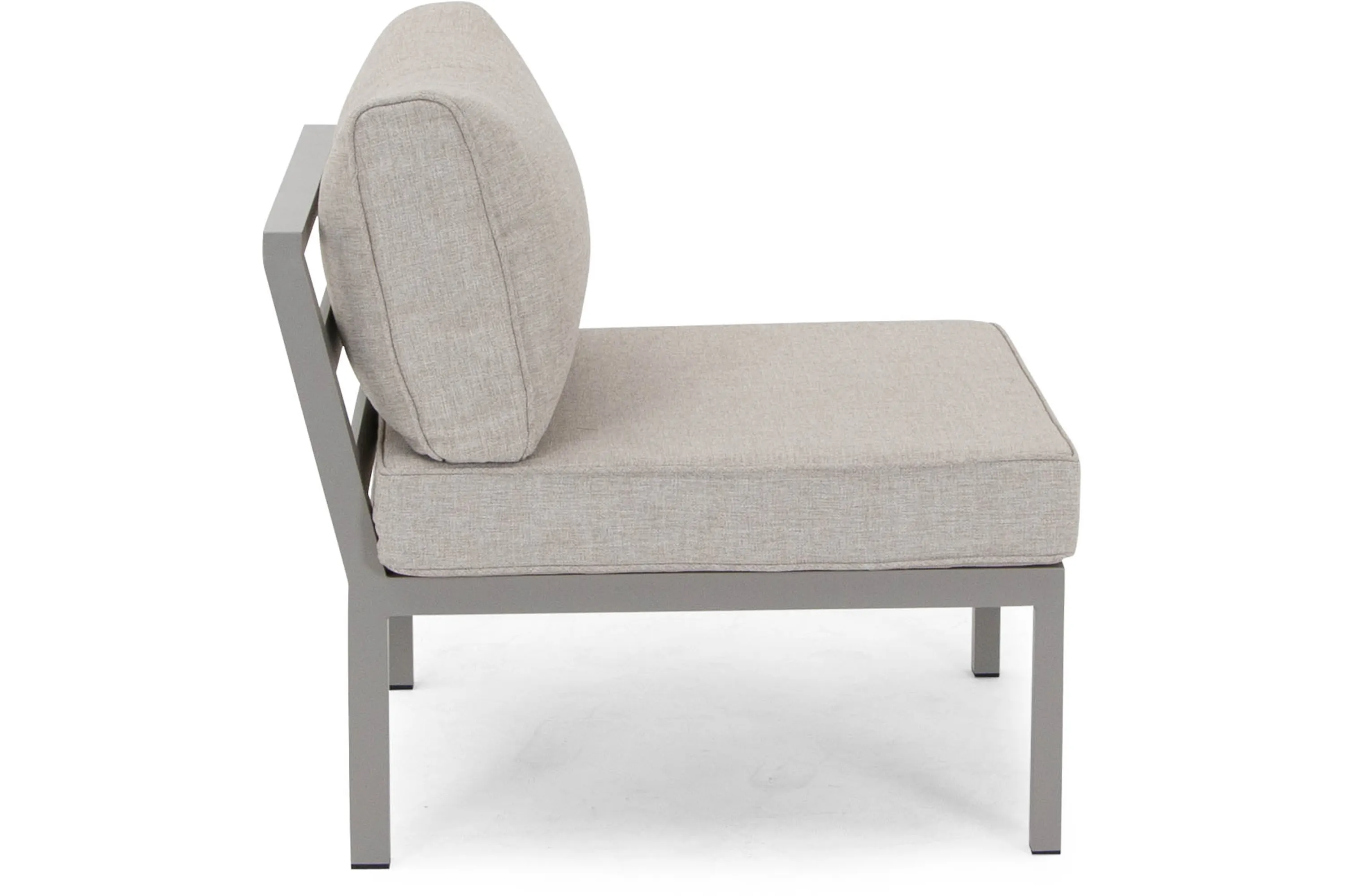 Mittdel till Weldon, passar ihop med hörnsoffa Weldon 2H2. En stilren och lättplacerad soffa i aluminium med matt finish. Soffan har allvädersdynor – perfekt för Nordiskt klimat. En byggbar serie, komplettera med fler mittdelar för en större soffa.