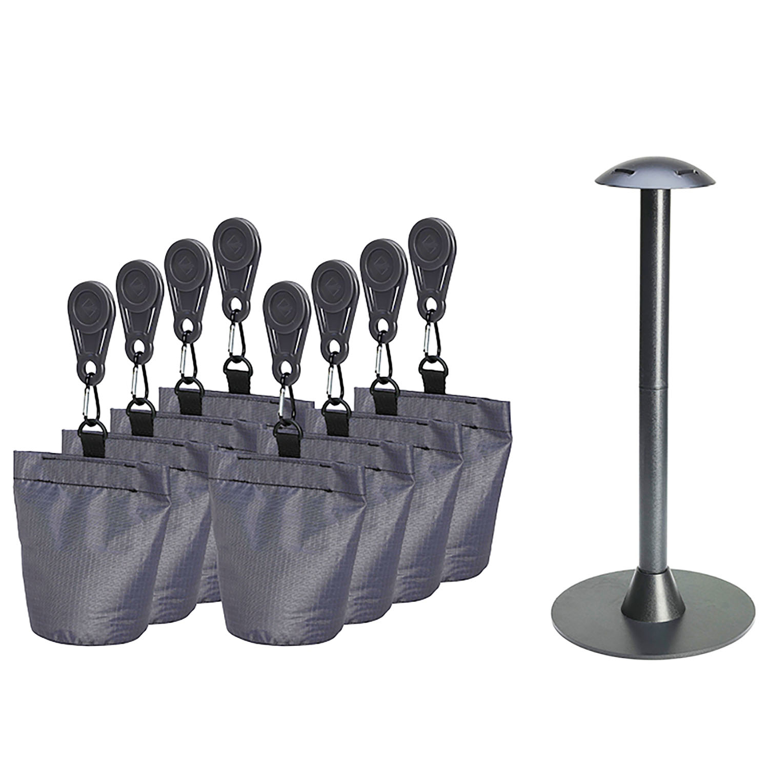 Stödpelaren ställer du i centrum på din möbel innan du täcker det vilket förhindrar vatten att samlas och bildar pölar som ligger mot exempelvis bordsskivan. Vid vattenansamlingar på möbelskyddet tillåter det inte ytan att andas och släppa ut den kondens som bildas under skyddet. De tillhörande 8 säckarna, som du fyller med sand och lätt fäster längst ned på möbelskyddet, gör att skyddet även ligger på vid blåst.