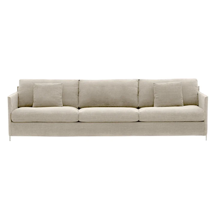 En lätt bohemisk touch och enkla linjer ger Petito ett nästan ikoniskt utseende. Soffans utbytbara klädsel ger även Petito möjligheten att ändra utseende efter säsong, rum eller helt enkelt för bekvämlighetens skull. Fjäderfyllningen i sätet och ryggkuddarna gör det till en mycket bekväm och avslappnad soffa att sitta i.