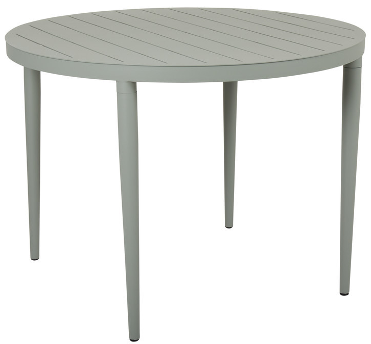 Det runda Bigby-bordet finns i två storlekar. Detta mindre bord har en diameter på en meter. De raka och eleganta detaljerna kontrasterar fint ihop med den runda formen och inbyggda skruvfötter i bordsbenen gör det lätt att parera ojämnheter i underlaget.