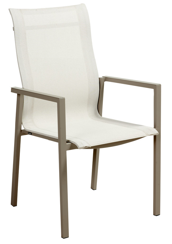 Denna stiliga och bekväma matstol har små detaljer som ger den en modern känsla samtidigt som den behåller sin tidlösa charm. Den höga ryggstödet i textilene erbjuder extra komfort med sin ergonomiska design, som följer ryggradens konturer och uppmuntrar dig att sitta och slappna av under längre stunder. För extra komfort, kombinera den med en Frisk sittdyna.
