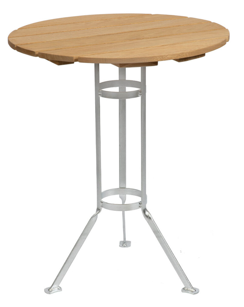 Det minsta bordet i Bryggeriserien är mycket lättplacerat med sina Ø60 cm. Det har varmförzinkat stativ och trädetaljer i vitlackad ek, oljad ek eller obehandlad teak.
