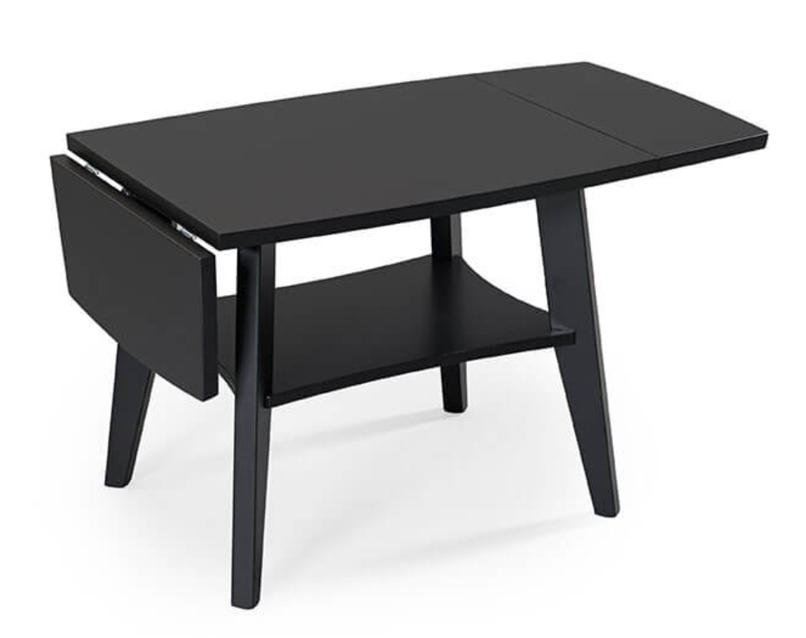 Birdie är ett soffbord som passar både små och stora vardagsrum. I serien finns det tre storlekar och varje bord kan ytterligare varieras i storlek tack vare de två klaffarna. Birdie har också en avlastningshylla undertill. Svensktillverkat!