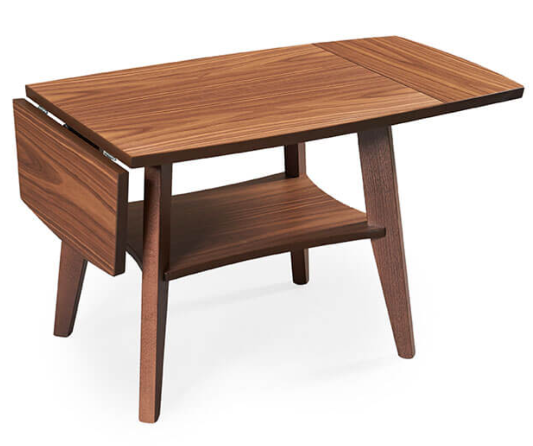 Birdie är ett soffbord som passar både små och stora vardagsrum. I serien finns det tre storlekar och varje bord kan ytterligare varieras i storlek tack vare de två klaffarna. Birdie har också en avlastningshylla undertill. Svensktillverkat!