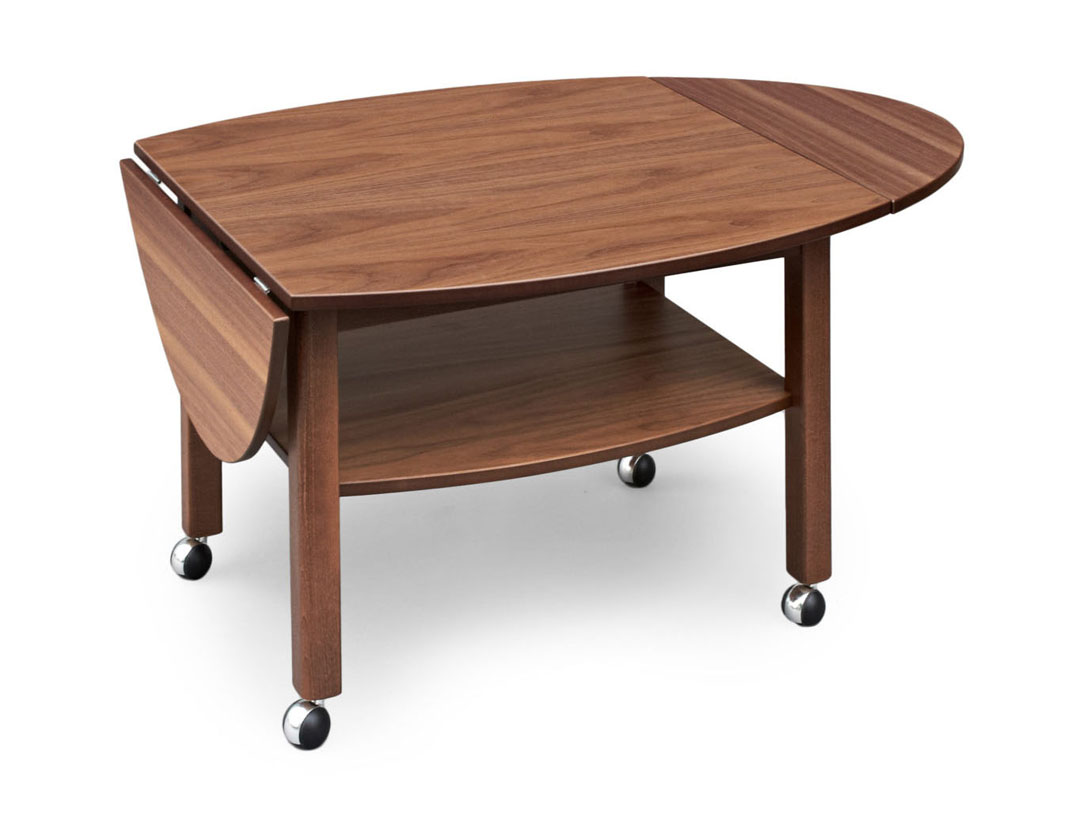 Havanna klaffbord är ett smidigt soffbord för vardagsrummet. Det är ett praktiskt bord på hjul, som gör det lätt att flytta på och sina klaffar, som smidigt gör bordet större. Med klaffarna uppfällda, har bordet en mjukt oval form. Soffbordet har även underhylla. Svensktillverkat! Finns i flera olika färger.