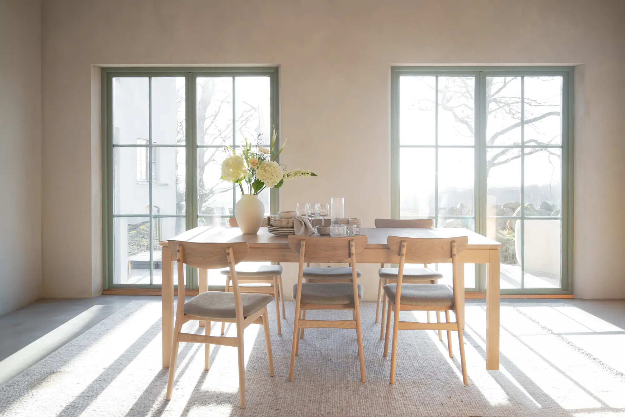 Matbordet har blivit behandlat med Rubio Monocoat som ger en tålig yta och står emot slitage väl. Detta innebär att bordet inte behöver ytterligare behandling innan användning. För att bevara bordets skönhet rekommenderar vi i stället regelbundet underhåll med RUBIO Surface Care för effektiv rengöring av fläckar (vid behov) samt RUBIO Refresh Eco för uppfräschning av träytan (vid behov, upp till 4 ggr per år). Mer information finns i skötselrådet.