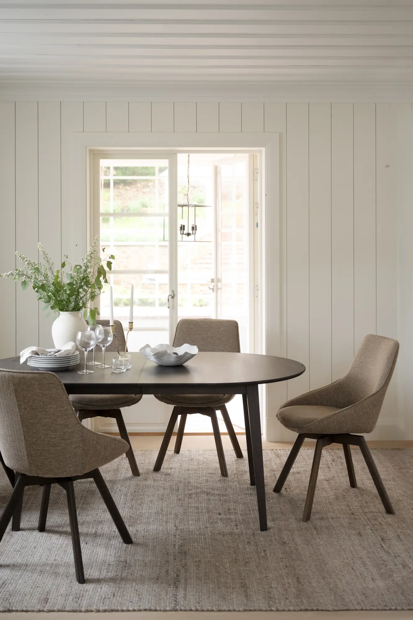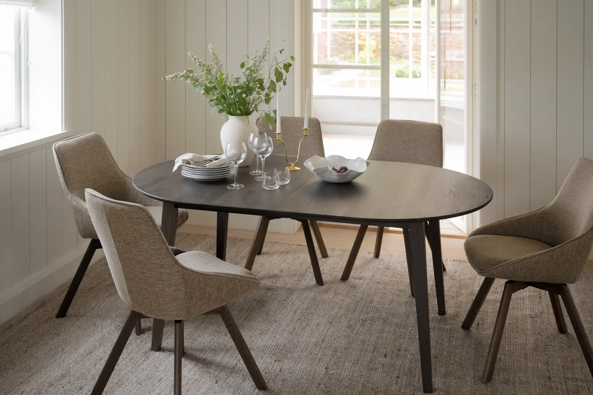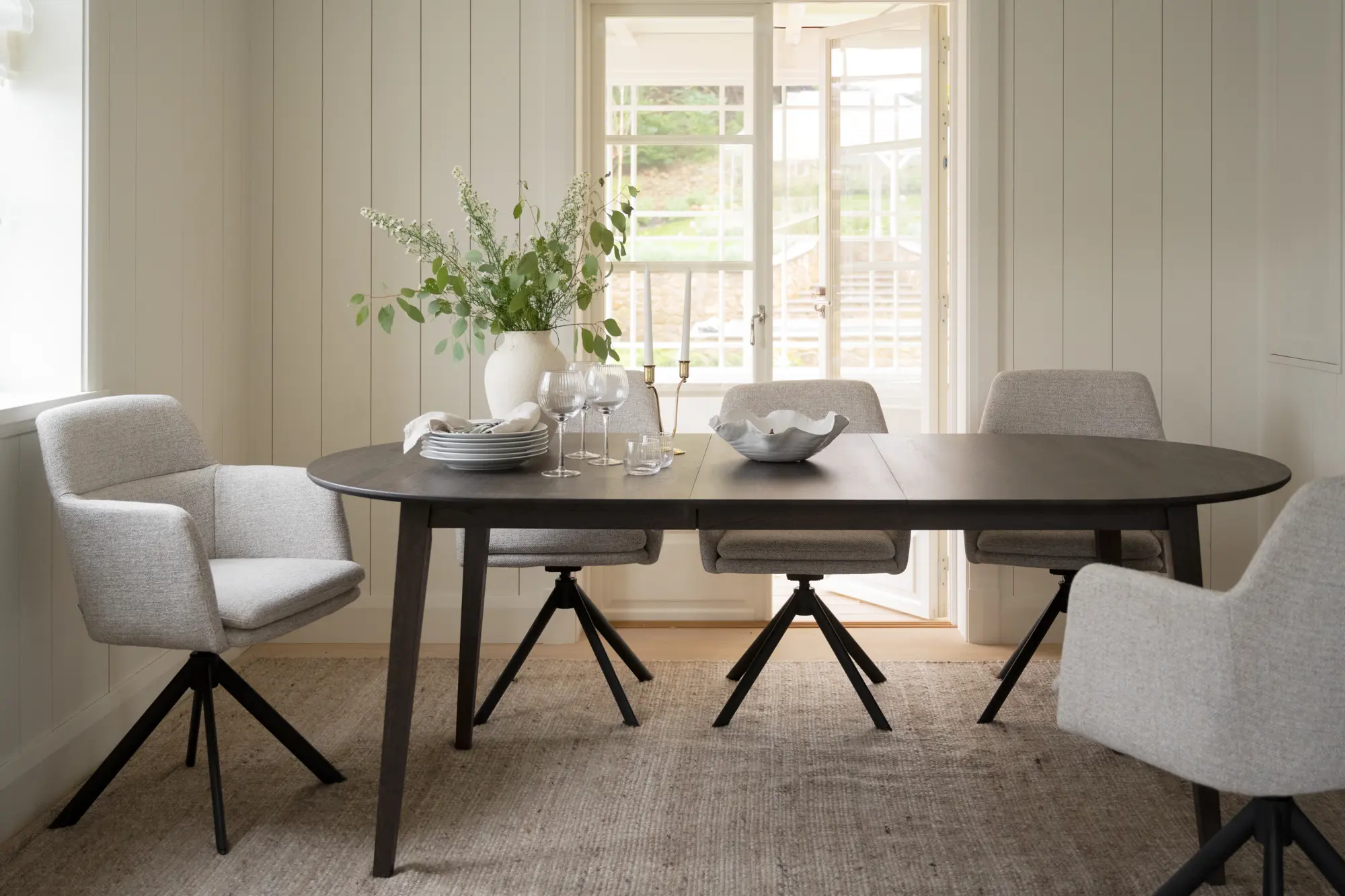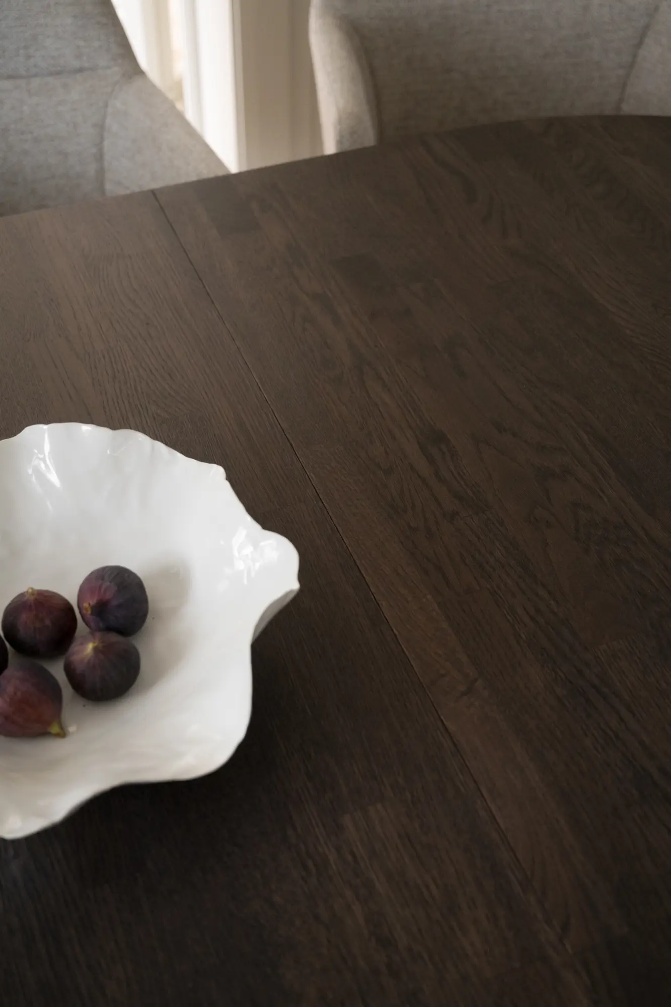 Filippa matbord är ett elegant ovalt bord i brunlackad borstad massiv ek, perfekt för dig som älskar skandinavisk design. Bordet mäter 170 cm som standard, men kan enkelt förlängas med 1 eller 2 tilläggsskivor à 40 cm. På så sätt kan bordet bli 210 cm eller hela 250 cm långt. Ett ilägg ingår och ytterligare ett går att köpa till. Matbordet är en del av den tidlösa och populära kollektionen Filippa, tillverkad av 100% FSC®-certifierat trä. Detta gör det inte bara till ett vackert tillskott i ditt hem, utan också ett hållbart och ansvarsfullt val. Finns i flera färger och storlekar för att passa olika behov och stilar.