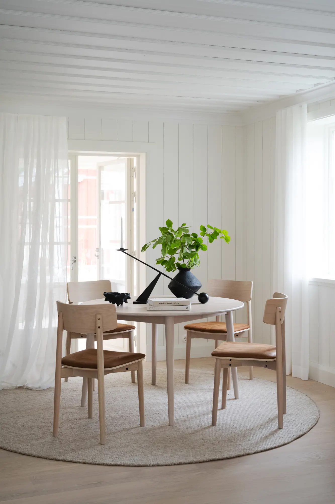 Tyler matbord Ø120 cm är ett runt bord i skandinavisk design som är tillverkad i Europa av massiv vitpigmenterad FSC®-certifierad ek. En iläggsskiva ingår när du köper bordet och det går att köpa till ytterligare en iläggsskiva à 45 cm, vilket då ger ett matbord på hela 210 cm. Finns i flera storlekar.
