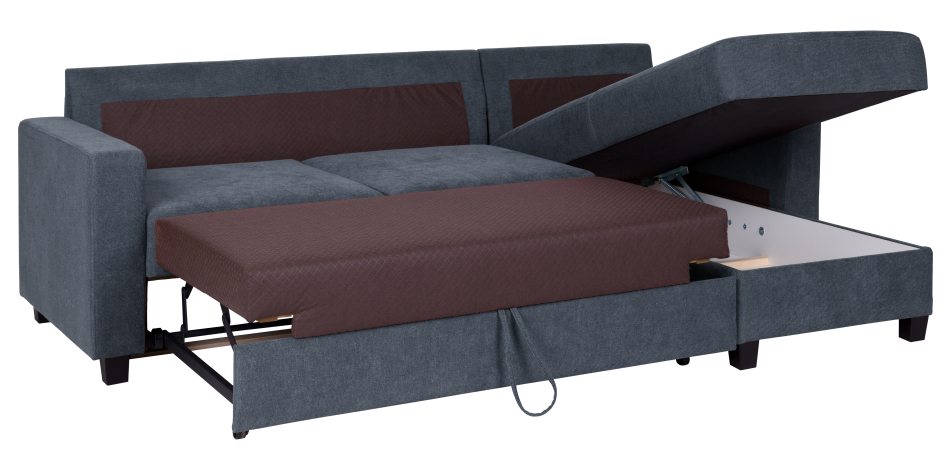 Bäddsoffa med divan och förvaring. Divanen går att montera även på vänster sida.
