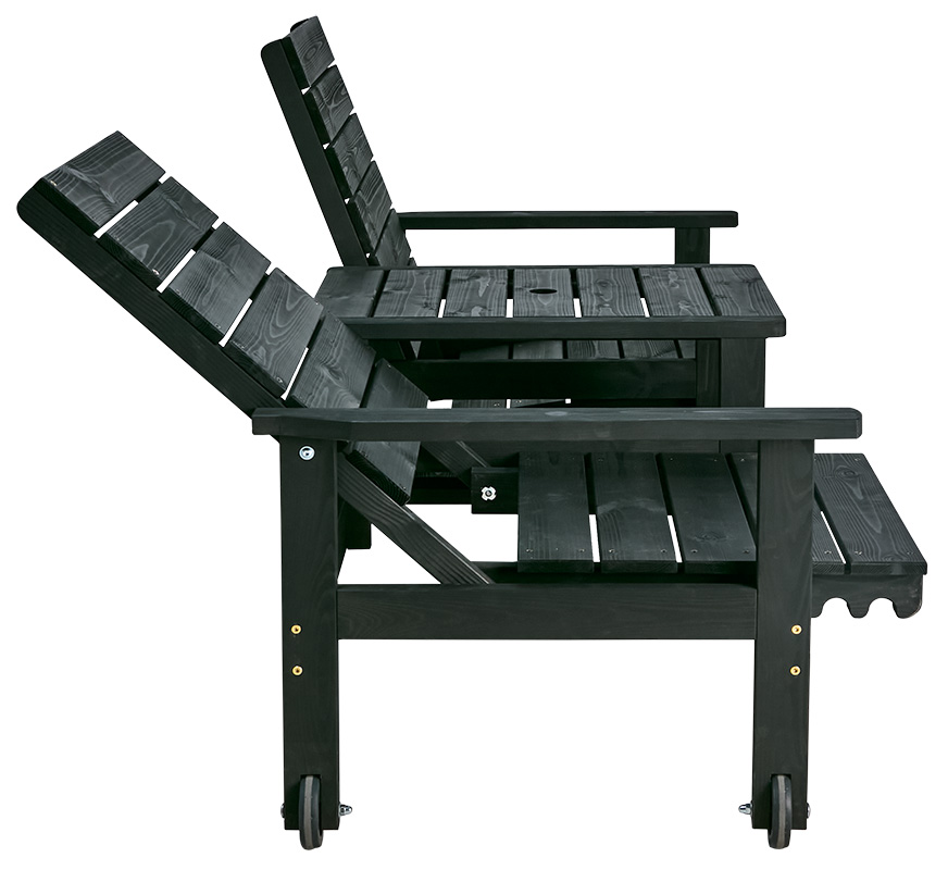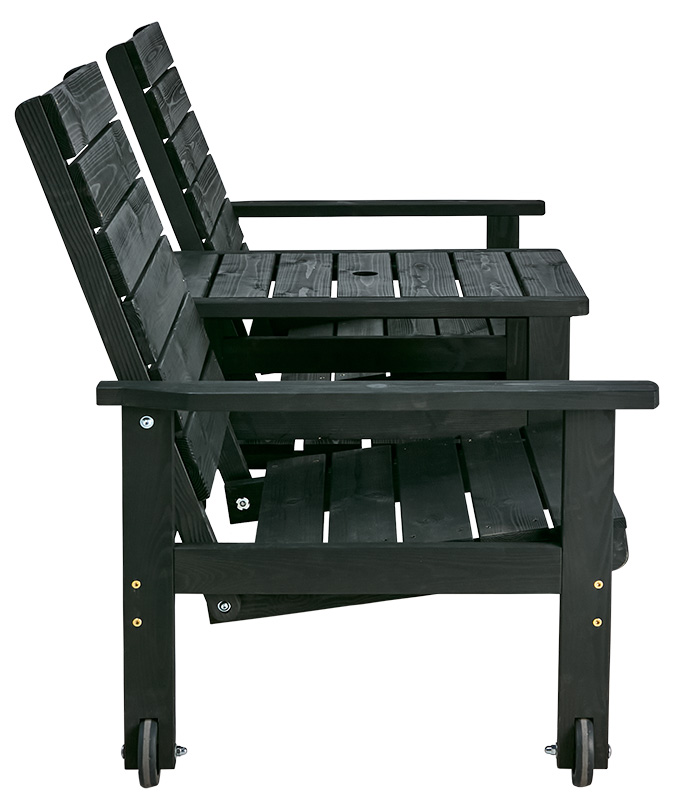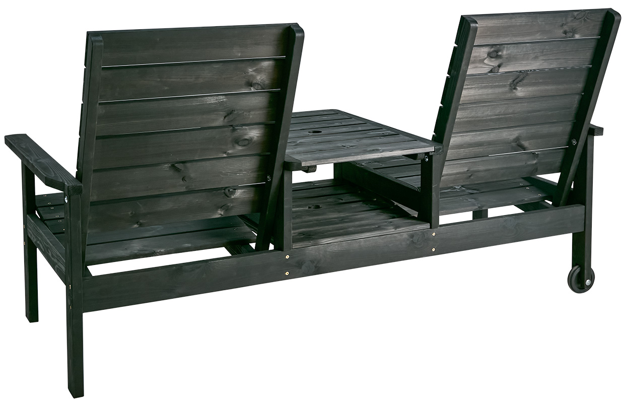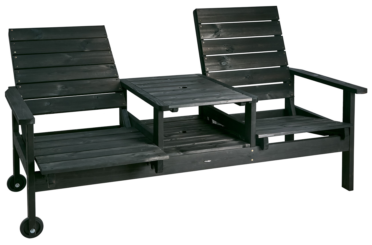 Den klassiska Du&Ja-möbeln för två är ställbar i tre lägen och har hjul för enkel förflyttning. Tillverkad i brunimpregnerad furu. Komplettera med dyna för extra sittkomfort. Hål i bord för parasoll.