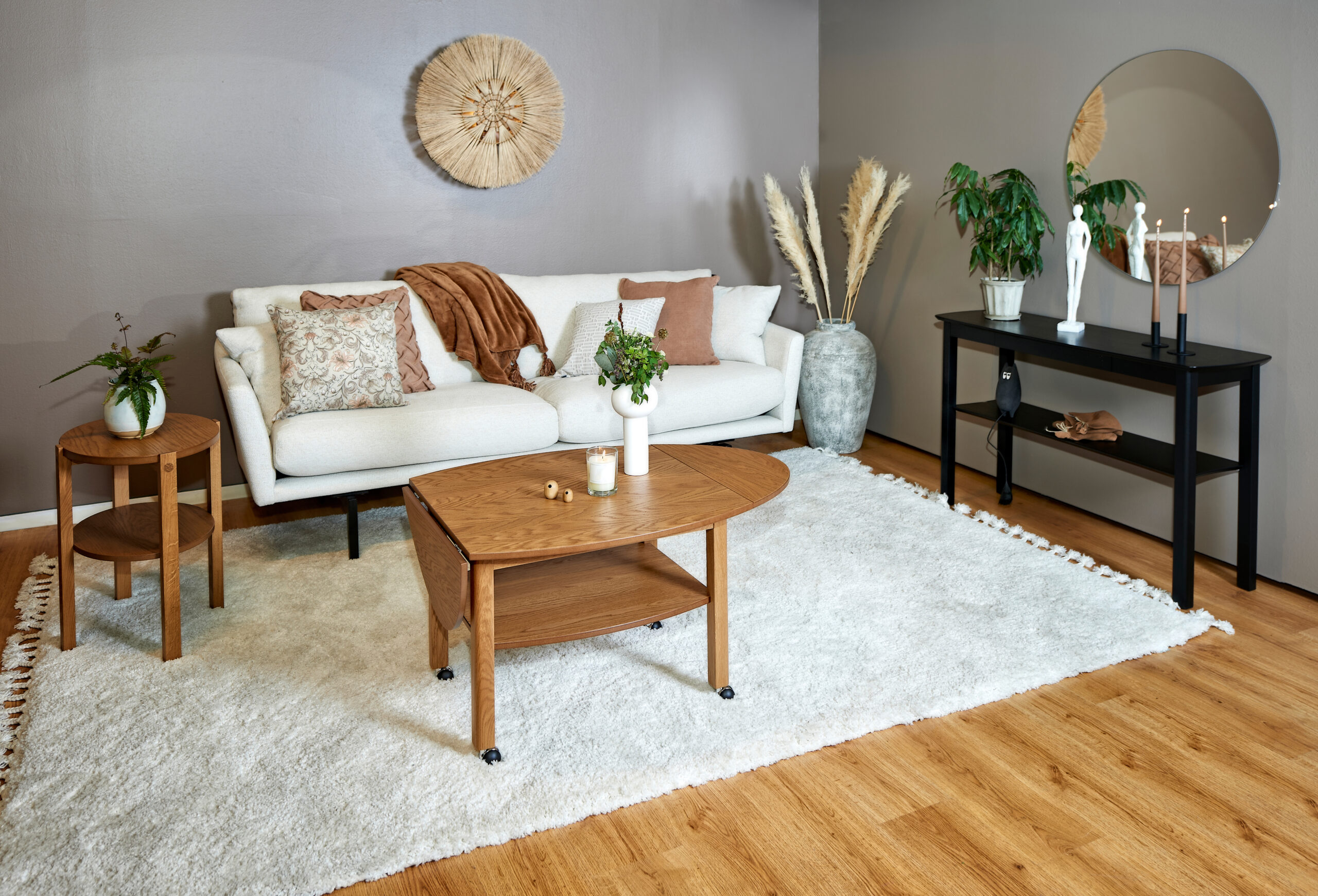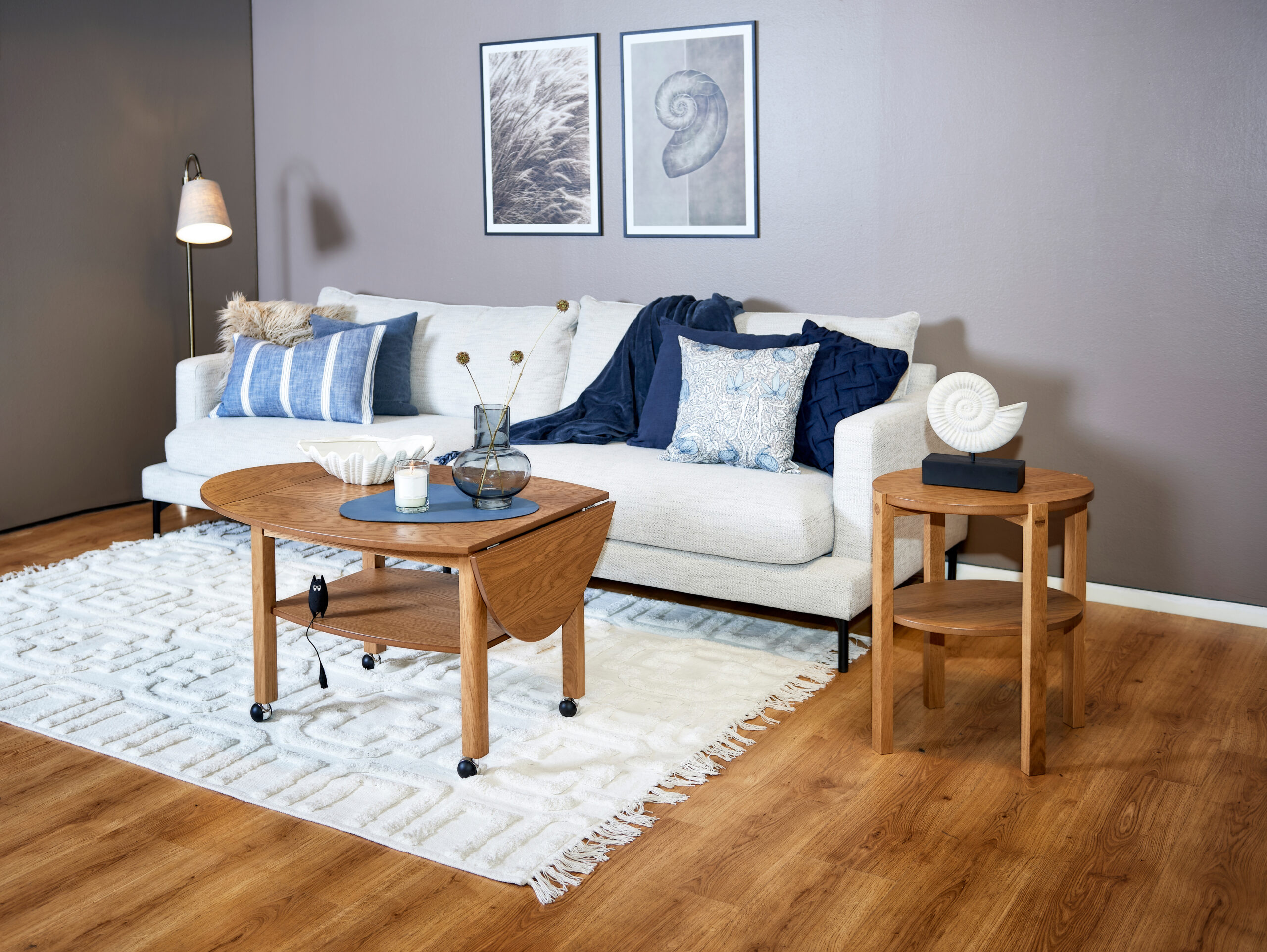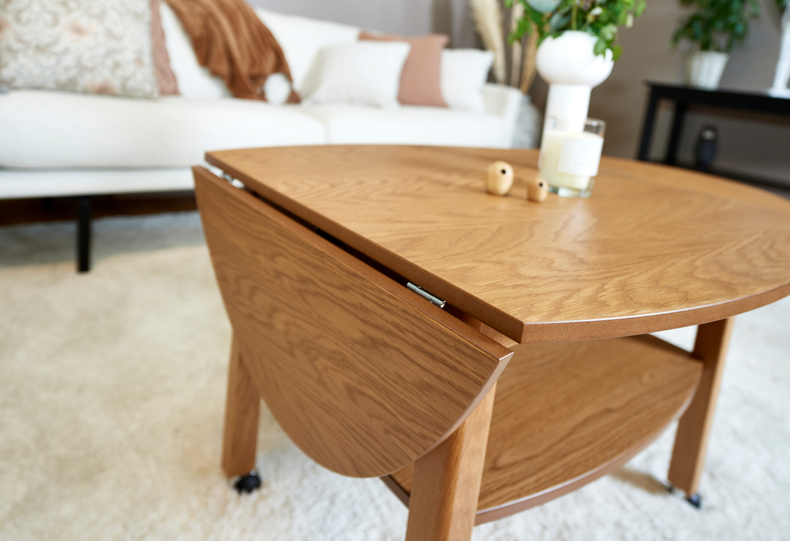 Havanna klaffbord är ett smidigt soffbord för vardagsrummet. Det är ett praktiskt bord på hjul, som gör det lätt att flytta på och sina klaffar, som smidigt gör bordet större. Med klaffarna uppfällda, har bordet en mjukt oval form. Soffbordet har även underhylla. Svensktillverkat! Finns i flera olika färger.