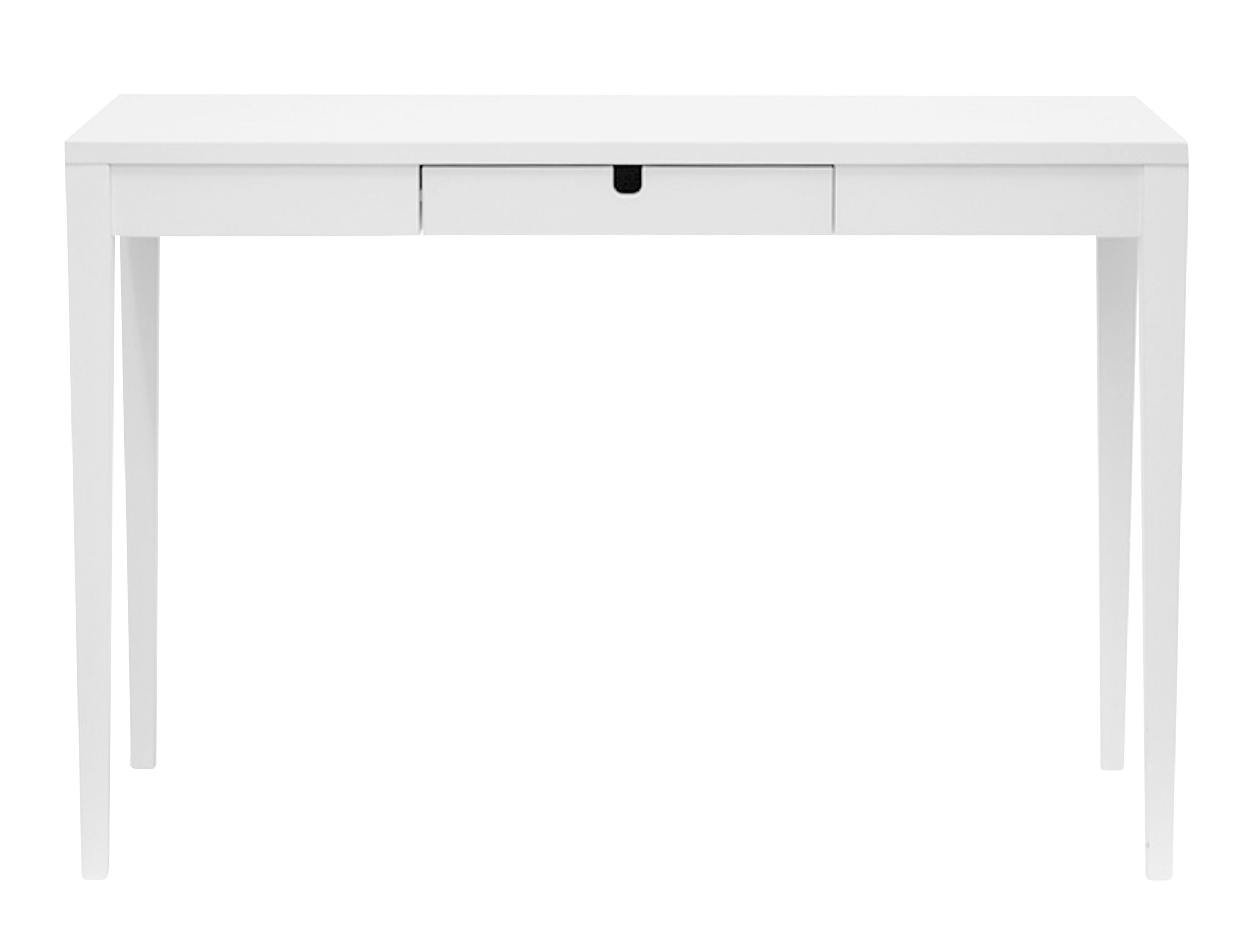 Klinte skrivbord i vitlack. Ett tsilrent och enkelt skrivbord med låda i sargen för praktisk förvaring.