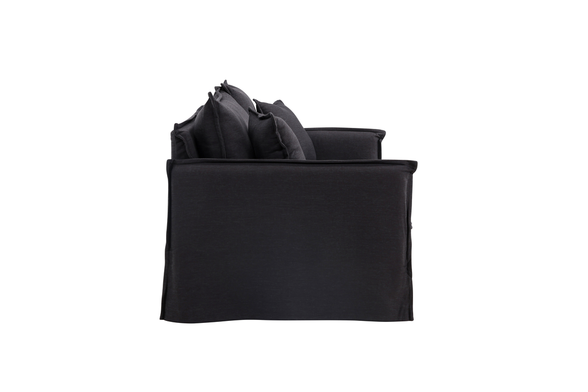 Den genomtänkta kappan döljer soffans ben och ger ett mjukt, stilrent uttryck – samtidigt som den gör det enkelt att komma åt med dammsugaren när det är dags för städning. Praktiskt och snyggt i ett.