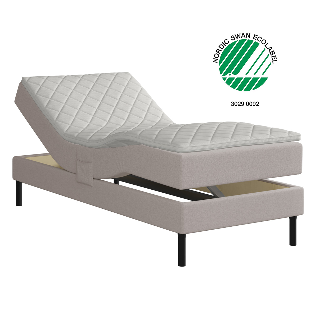 Tall ställbar säng är svanenmärkt och tillverkas i Sverige och är präglad av hantverksstolthet och kärlek. Tall är sängen som erbjuder god avlastning med sitt vändbara och zonindelade resårsystem. De 5 zonerna avlastar hela din kropp så du kan sova tryggt och vakna utvilad. Enkelfjädrad säng med ram med mekanik. Höj- och sänkbar huvud- och fotända. Vändbar madrass med 5 zonat pocketresårsystem, 18 cm ram i FSC märkt trä. Trådlös fjärrkontroll med Bluetooth. Välj mellan medium, fast och extra fast liggkomfort.