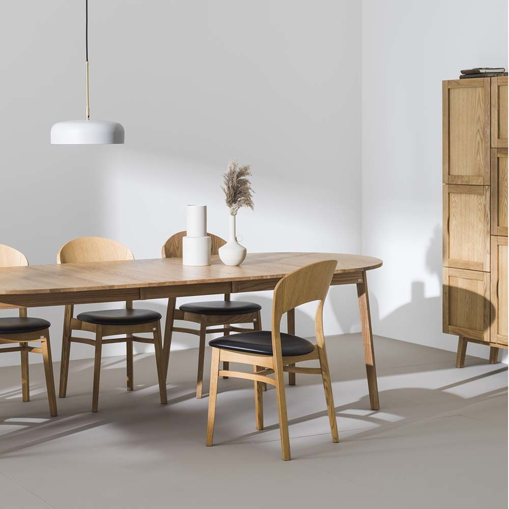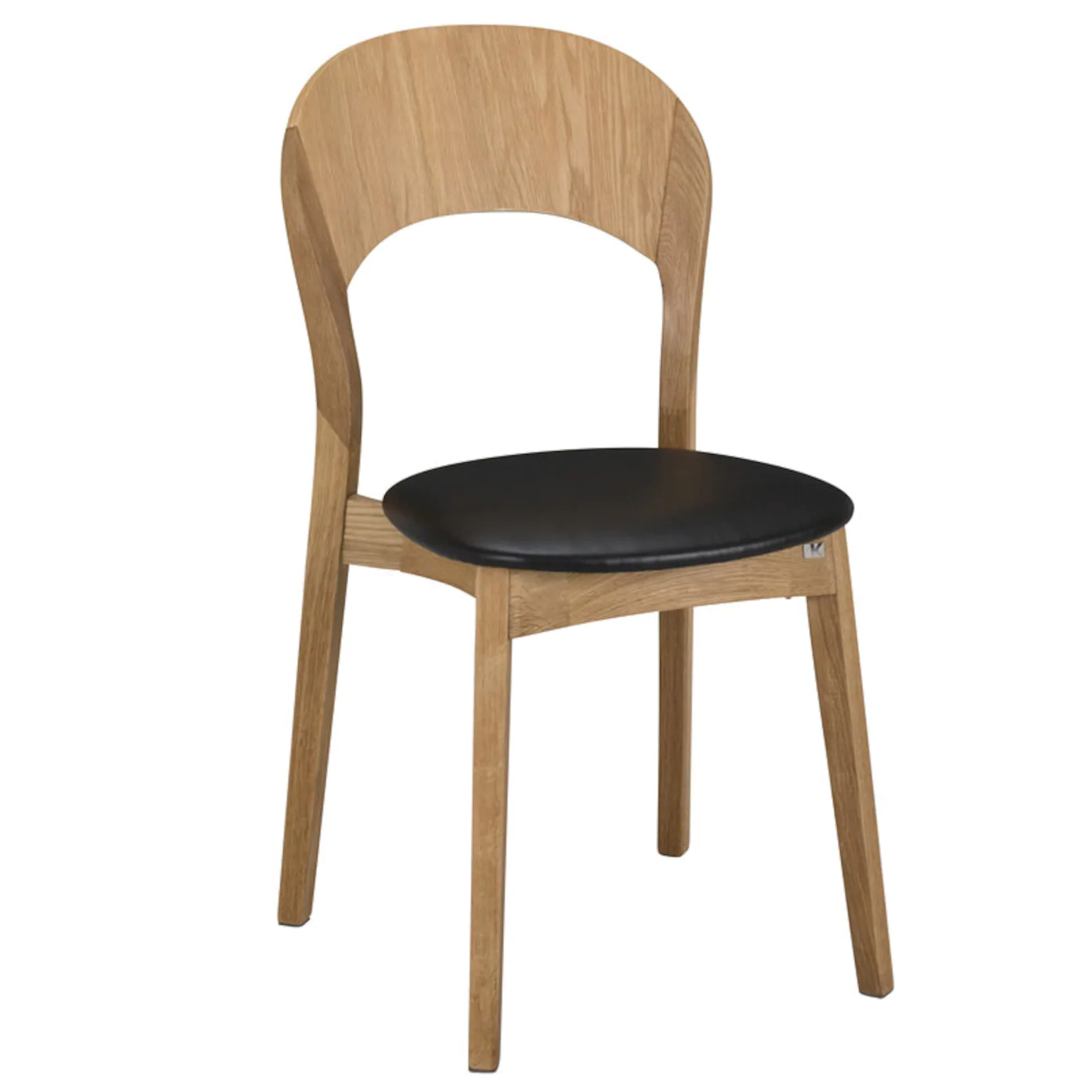 Avser stol i massiv oljad ek med sits i Elmo läder. Välj mellan färgerna camel, brun eller svart.