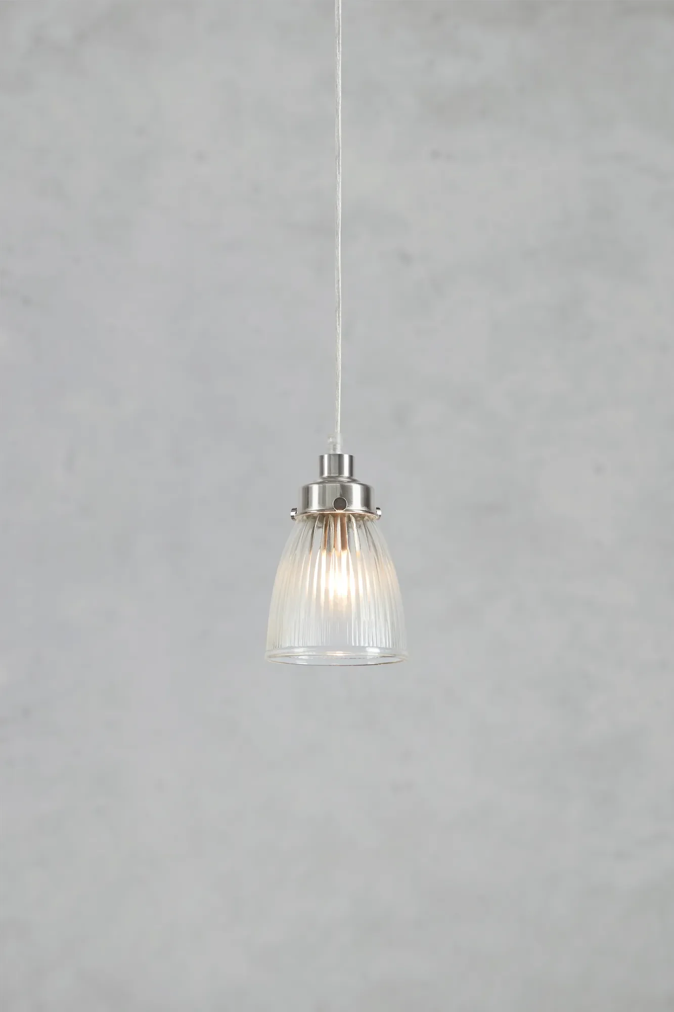 Tekniskt: Lampan kräver en ljuskälla med liten sockel (E14) om max 40 W eller motsvarande i LED, ingår ej. 3,5 m transparent kabel med strömbrytare och väggkontakt (1 m från väggkontakt till brytare).